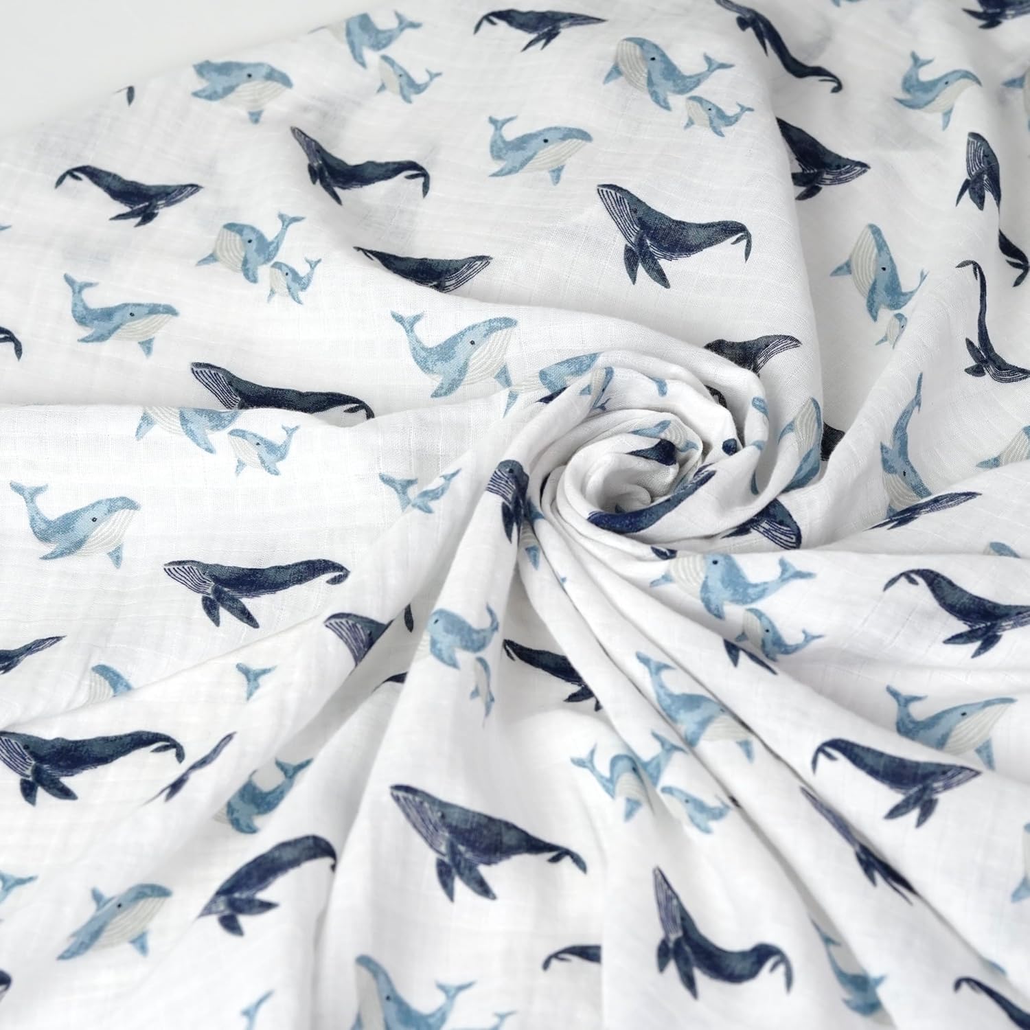 Snuggle your little one in comfort with this 2-pack of muslin baby blankets, designed for softness, breathability, and everyday versatility. Made from 100% cotton, these lightweight swaddle blankets are gentle on baby’s delicate skin and help keep them cozy without overheating—perfect for naps, stroller rides, or tummy time on the floor. Each blanket measures a generous 47" x 47", giving you plenty of coverage for swaddling, nursing, or using as a play mat when you're out and about. With a calming blue and white color palette, this set includes two charming designs: one with playful whale illustrations and another in a soothing coastal blue color. These baby blankets are not only adorable, they’re practical too. They’re machine washable and dryer safe, so they’re easy to clean and always ready for your next outing or snuggle session. Whether you're building your own collection of baby essentials or searching for a thoughtful baby shower gift, these muslin blankets deliver comfort, convenience, and a splash of coastal charm. Note: For safety, infants under 12 months should never be left unattended with a blanket.