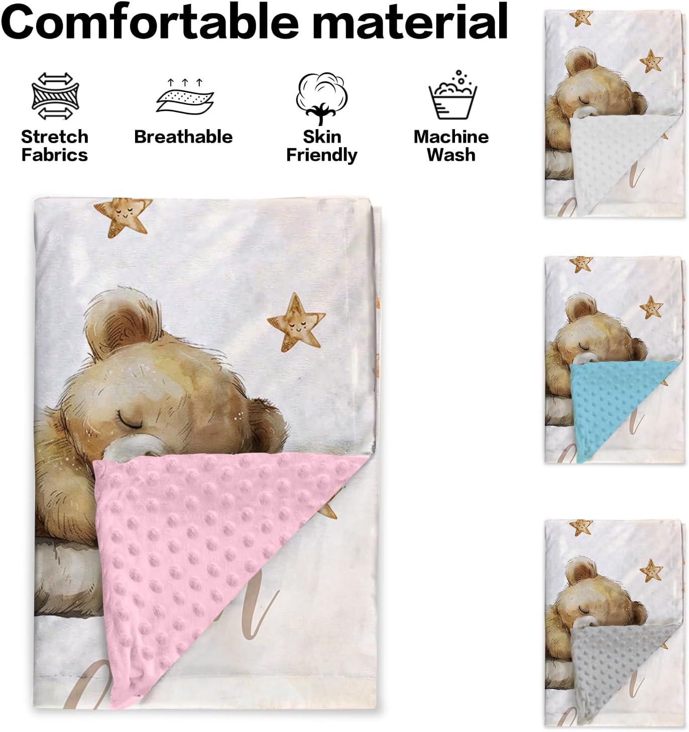 Wrap Your Little One in Love Personalized Baby BlanketOur custom baby blanket is more than just a piece of bedding its a heartfelt keepsake designed to celebrate your babys earliest days. With your little ones name elegantly printed and surrounded by adorable brown bear illustrations, this blanket captures the warmth, love, and joy of new parenthood. Every snuggle becomes more special when its wrapped in something made just for them.Made with a soft, dotted back fabric, the blanket offers a gentle texture that soothes and comforts, perfect for a newborns sensitive skin. It provides the ideal balance of warmth and breathability, so your baby stays cozy without overheating whether during nap time, stroller rides, or tummy time on the floor.The brown bear theme design adds a playful charm that brightens any nursery. Whether you choose it for your own baby or as a thoughtful gift, it becomes an eye-catching piece that also looks beautiful in photos. Parents love using it for milestone pictures, newborn photo sessions, and special family moments.Why parents love it:Customizable with Babys Name A one-of-a-kind blanket your child will treasure for years.Adorable Brown Bear Design Brings a fun and loving atmosphere to the nursery.Soft & Gentle Plush dotted back that feels soothing on delicate skin.Versatile Use Perfect for swaddling, as a crib blanket, stroller cover, or keepsake.Gift-Ready A meaningful choice for baby showers, birthdays, baptisms, and holidays.This personalized baby blanket is machine washable and crafted to withstand daily use while keeping its softness wash after wash. Whether for everyday comfort or as a cherished keepsake, its the perfect way to wrap your little one in love.