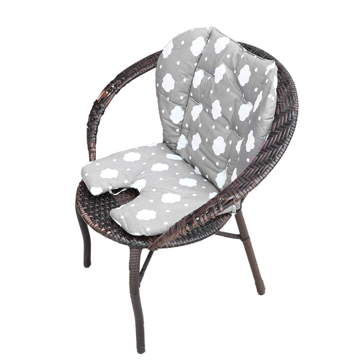 Feature1: Thicker lining3: softer and more comfortable4: The shoulder strap is 42cm. waistband 22cm, Longer and stronger5:Size:The size of the seat cushion: the top is 41 cm long and the bottom is 31 cm long. Upper width: 48 cm, bottom width 37 cm.6: The 2 belts on the top of the highchair cushion are easier to tie to the back of the chair.There are 2 straps on each side of the waist to tie the dining chair, making the cushion more stable and not slipping,Stronger.7:The crotch position of the baby cushion is a hollow U-shaped slot. This design is more practical, making it more suitable formore models of baby high chairs, baby dining chairs. Even baby dining chairs with crotch posts can use this cushion.Although there are 2 straps at the top and waist of the mat, you cannot rely on them to secure the mat or the rest of it to the high chair.You must wear 5 high chair belts to use it. It will work better. There are 6 notches and a U-shaped notch on the cushion,which are suitable for 5-point safety belt. Package Included1 X twoworld large thickening high chair seat for baby