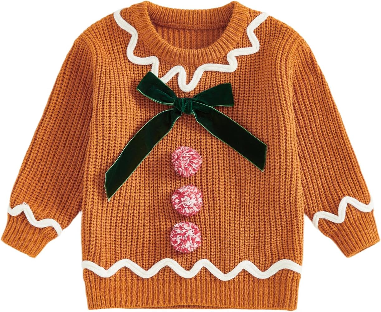 Baby Girl Christmas Sweater, Long Sleeve Crew Neck Bow Winter Warm Knit Pullover Sweater Infant ClothesA perfect addition to baby girl's cool-weather wardrobe, easy to go and fit with other clothes.Size Chart0-6M Length: 30 Bust: 58 Sleeve: 21 Shoulder: 30 Suggest Age: 0-6 Months6-12M Length: 34 Bust: 63 Sleeve: 24 Shoulder: 32 Suggest Age: 6-12 Months12-18M Length: 36 Bust: 66 Sleeve: 26 Shoulder: 33 Suggest Age: 12-18 Months18-24M Length: 38 Bust: 69 Sleeve: 28 Shoulder: 34 Suggest Age: 18-24 Months2-3Y Length: 41 Bust: 72 Sleeve: 31 Shoulder: 35 Suggest Age: 2-3 YearsSize(inch)0-6M Length: 11.81 Bust: 22.83 Sleeve: 8.27 Shoulder: 11.81 Suggest Age: 0-6 Months6-12M Length: 13.39 Bust: 24.80 Sleeve: 9.45 Shoulder: 12.60 Suggest Age: 6-12 Months12-18M Length: 14.17 Bust: 25.98 Sleeve: 10.24 Shoulder: 12.99 Suggest Age: 12-18 Months18-24M Length: 14.96 Bust: 27.17 Sleeve: 11.02 Shoulder: 13.39 Suggest Age: 18-24 Months2-3Y Length: 16.14 Bust: 28.35 Sleeve: 12.20 Shoulder: 13.78 Suggest Age: 2-3 YearsSpecificationItem Name: Baby SweaterColor: BrownSize: 0-6 Months, 6-12 Months, 12-18 Months, 18-24 Months, 2-3 YearsMaterial: 100% PolyesterPattern: BowSleeve: Long SleeveCollar: Crew NeckPackage Contents1pc x sweaterFriendly Tips1.Please kindly allow 2-3% difference according to manual measurement2.Please note that a slight color difference should be acceptable due to the light and screen. Thanks.