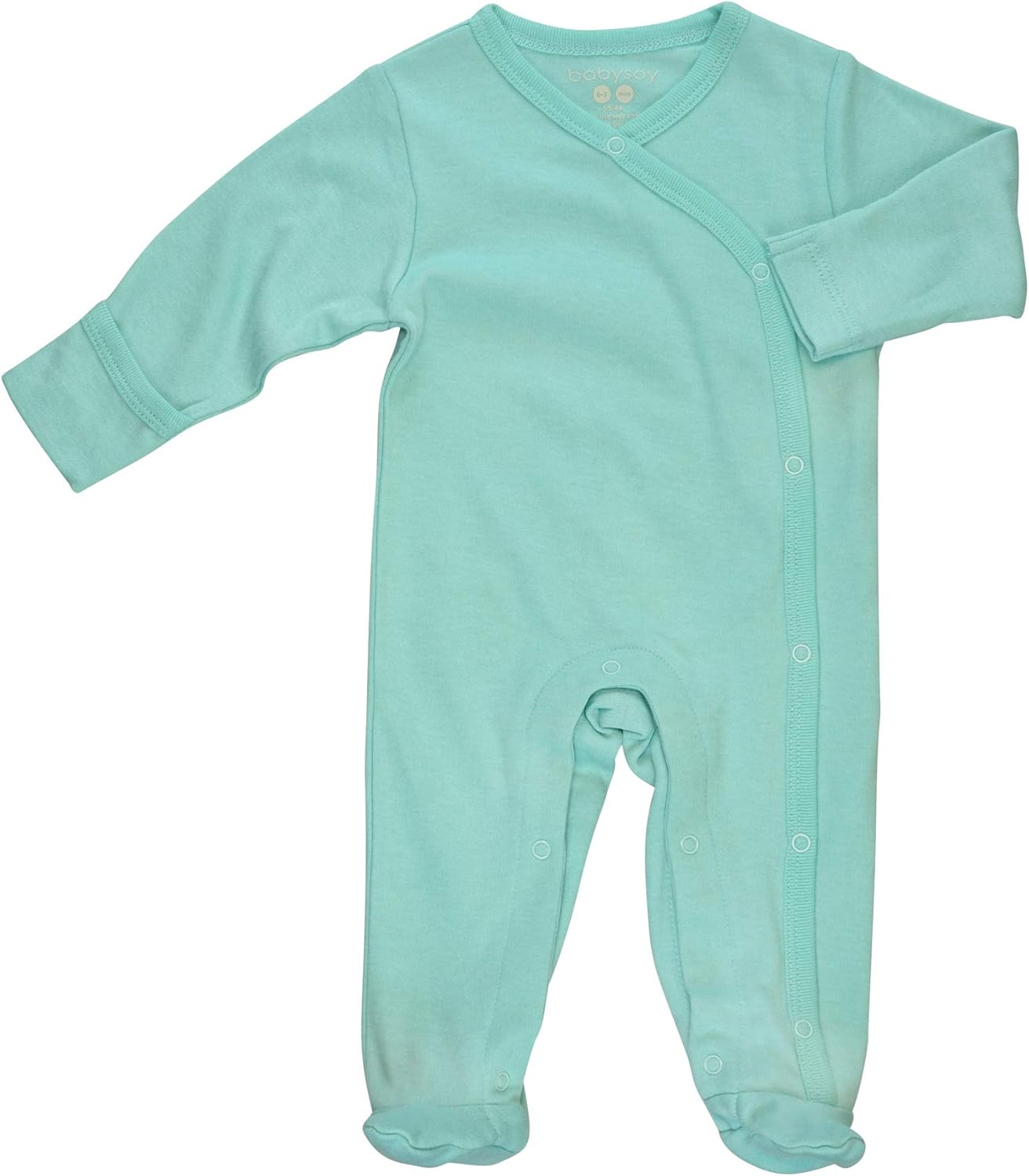 Snuggle babies in babysoy's footie coverall that covers your baby in the softest and most comfy fabric all the way down to their toes. Built-in cover-ups for little hands on each sleeve (sizes 0-3, 3-6 only) to prevent unwanted scratches. Specially designed using Nickle-Free YKK snaps from neckline all the way to ankle for fuss-free changes. This essential piece will get tons of wear through baby's nap time, playtime and anytime. We blended super soft organic cotton with azlon from soy to make this piece specially soft. Modern solid colors perfect for every baby's basic staple wardrobe. Azlon from soy is a recycled material made from the left over pulp of soy milk production. It is a sustainable fabric and its porous structure allows extra air permeability to keep babies warm in the cooler days and dry during the summer time.
