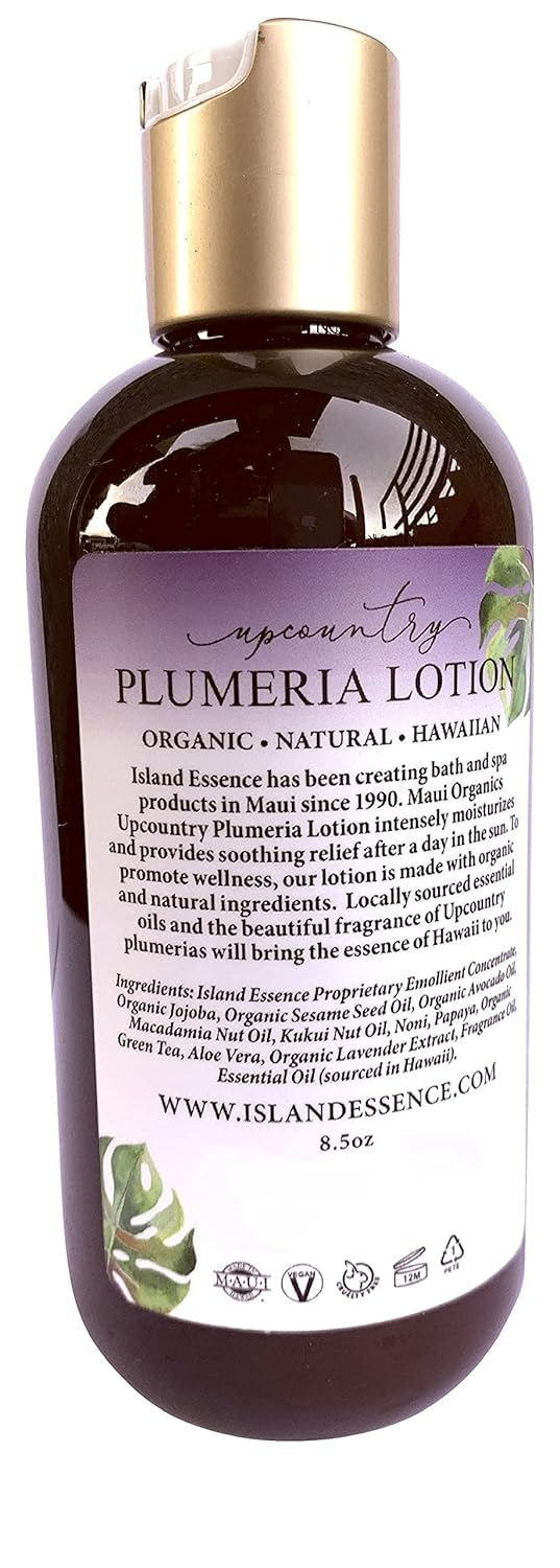 This organic plumeria-scented lotion is perfect for after-sun care, enriched with conditioning and moisturizing ingredients like organic aloe vera, chamomile, and vitamins A, B5, and E. Comes in an 8.5 oz bottle.