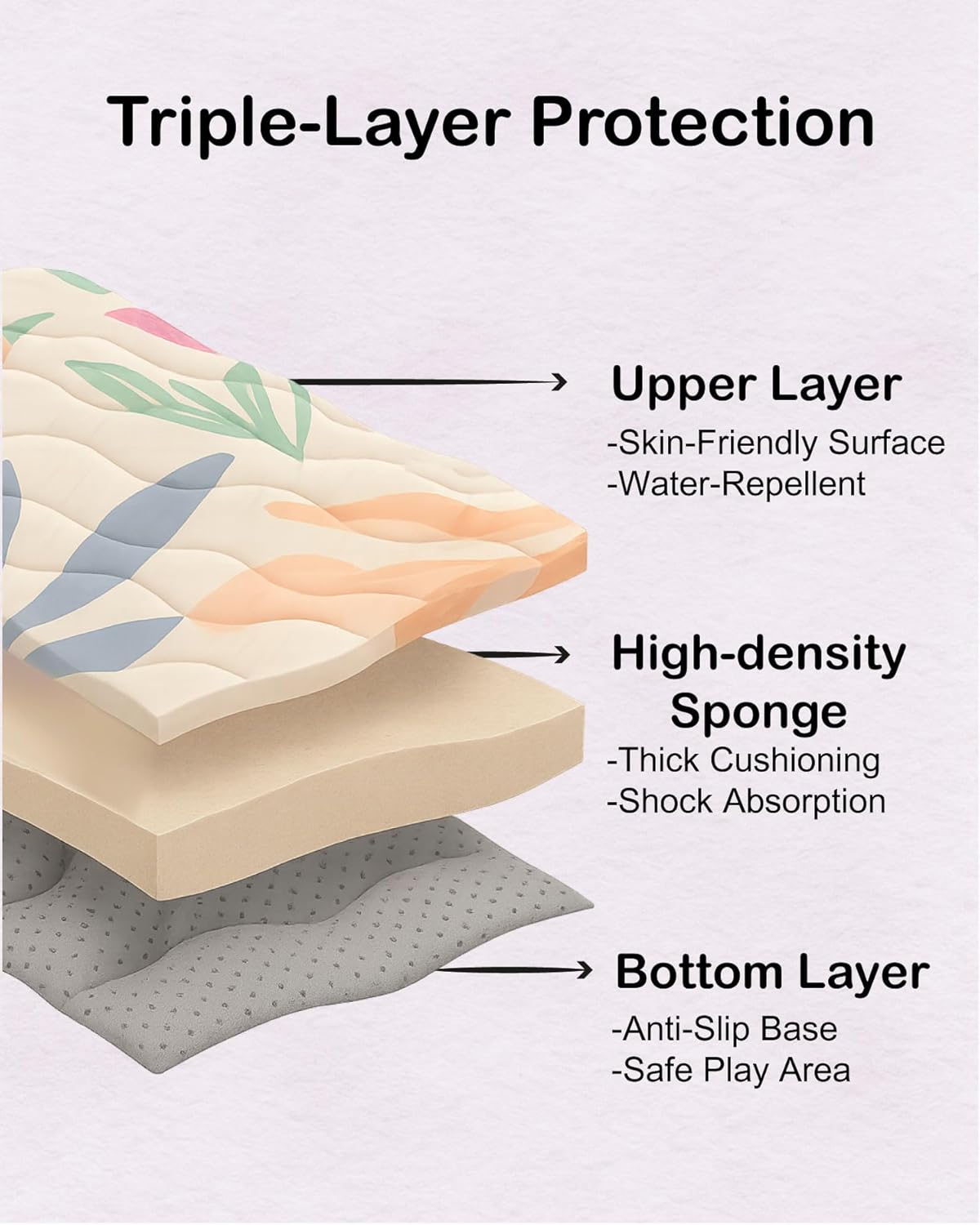 Meet the Pupilo 3-in-1 Baby Play Mat, Nap Mat & Toddler Seat—a versatile mat that adapts to your baby’s needs. Use it as a cushioned play surface, fold it into a cozy nap mat, or turn it into a secure toddler seat. One smart solution for play, rest, and comfort. Sized at 50x50 inches, it fits perfectly in standard playpens and stays in place with its non-slip safety base. The thick, non-toxic foam offers superior cushioning for tummy time, crawling, and first steps while protecting knees and elbows. Designed for growth, Pupilo also supports sensory development with soft textures and high-contrast details that keep your baby engaged and motivated to roll, crawl, and play. Lightweight, foldable, and portable, it’s easy to store or take anywhere. Plus, the water-repellent surface makes cleaning quick and stress-free. Give your little one a safe, soft, and multifunctional space to grow—choose Pupilo, the play mat that does more.