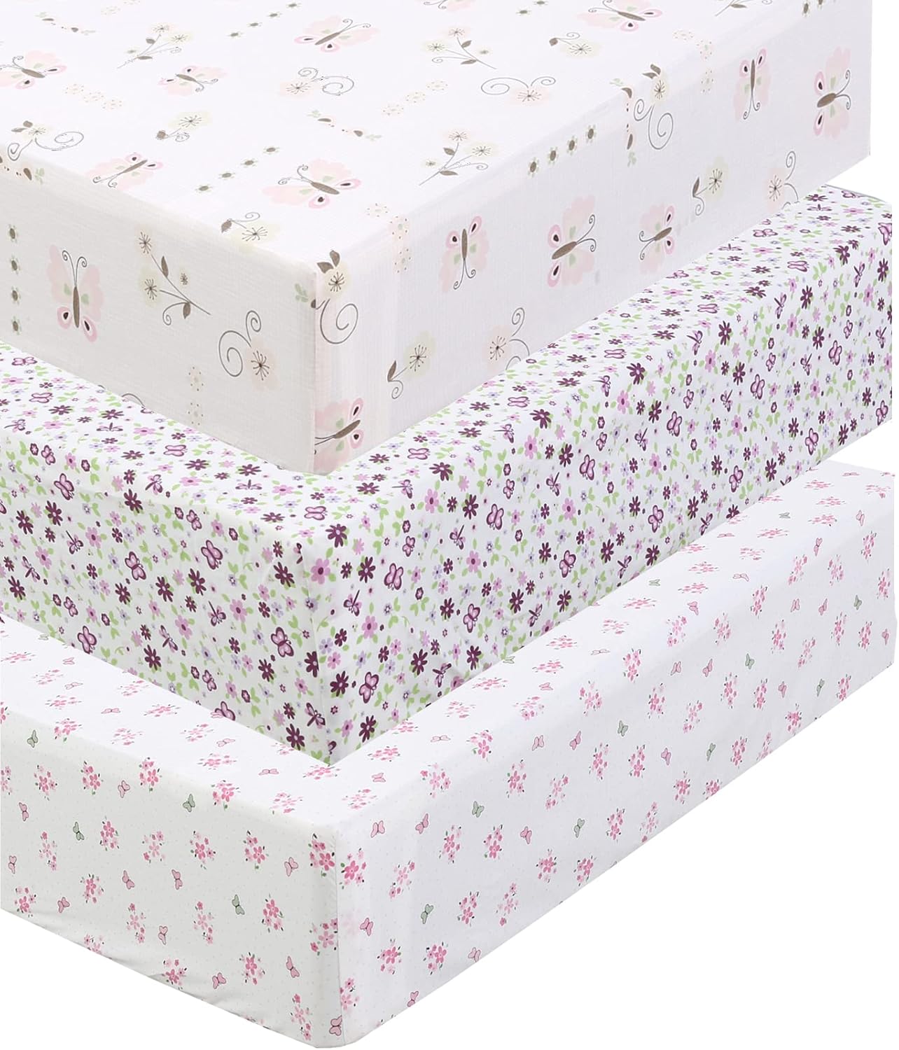 Includes 3 different patterned fitted sheets, each in its own unique pattern so you can quickly change the look & feel of your little ones bed. This sheet set includes 3 different colorful patterns. All of which your child will enjoy sleeping on. Fitted sheet fits a standard crib/toddler mattress 52"x28" inches, deep pocket fits up to 8" inches thick. Made of 100% Cotton, soft, breathable fabric. These sheets have full elastic all the way around the sheet for safety so that it fits snug on your child's mattress. With easy-care machine-washable material, these sheets are easy and quick to launder for those accidents that may occur.