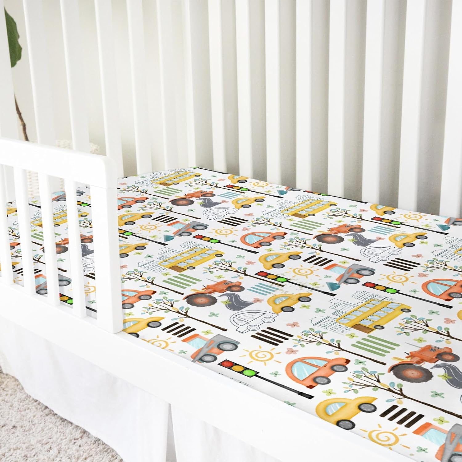 With a variety of adorable and trendy patterns and colors, our unique crib sheets add a of style and cuteness to your baby's nursery. The baby crib sheets are made of silky soft fiber, which is soft, comfortable, lightweight, breathable, stretchy and durable fabric. The size of crib sheets is 28''x52'', suitable for standard cribs and infant mattresses. With elastic band surrounded can fit your mattress tightly, not loose and flat, tight elastic band, double reinforcement, keep the crib sheet in place. It can be used as baby bed sheet, crib mattress sheet, toddler sheet, nursery bedding sheet and perfect for sleeping, snuggling and tummy time. It would create a tidy, unified and stylish look. Besides, the sheets can also be used on a dog bed and car-seat. Suitable for all seasons, providing maximum comfort during and time. Can be folded, easy to carry and use, perfect for travel, vacation, indoor, outdoor use. It is a must-have modern baby essentials for newborns, infants, and toddlers. Hand wash under 45˚C warm water. Machine wash by gentle cycle. Do not bleach and use other detergent. Do not soak for a long time. No dry cleaning.