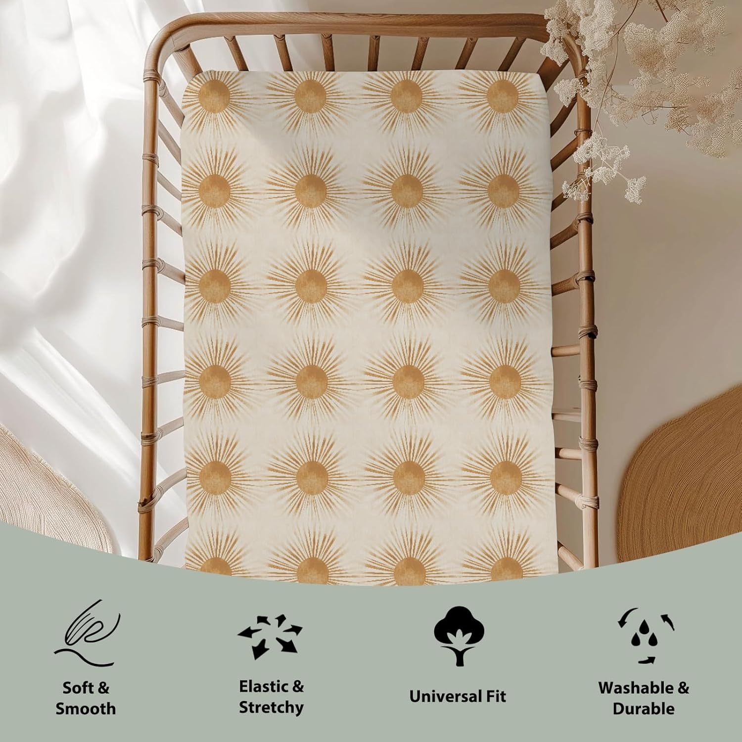 With various cute prints, our crib sheets are perfect for any nursery theme. You can choose to match the different decoration of the room. These crib sheets create a cozy, secure sleep environment, promoting better sleep while blending with your decor. Crafted for both boys and girls, these sheets are a practical choice, ensuring better sleep for your baby day or night. Material: Our crib sheet is made of ultra soft silky polyester, carefully selected fabrics for baby, which is super soft, comfortable, and breathable, let your baby sleep peacefully all night long. Perfect Size & Snug Fit: Measuring 28 by 52 inches with 9 inches deep pocket and whole elastic bandage surround, our crib sheets can perfectly fit standard crib mattress or toddler mattress up to 9 inches. A whole strong elastic band at the bottom help keep the sheet stay flat right in place securely and snugly to create a safe and comfortable sleep environment for babies. Great Gift Idea: A practical and thoughtful gift for the baby shower, newborn, baby registry, birthday, Christmas, or any other special gift-giving occasion. Wash Instructions: These baby crib sheets are fade resistant and machine washable for easy care. Simply place them in the washing machine, set them on a gentle cycle with cold water and dry them on low heat or line dry.