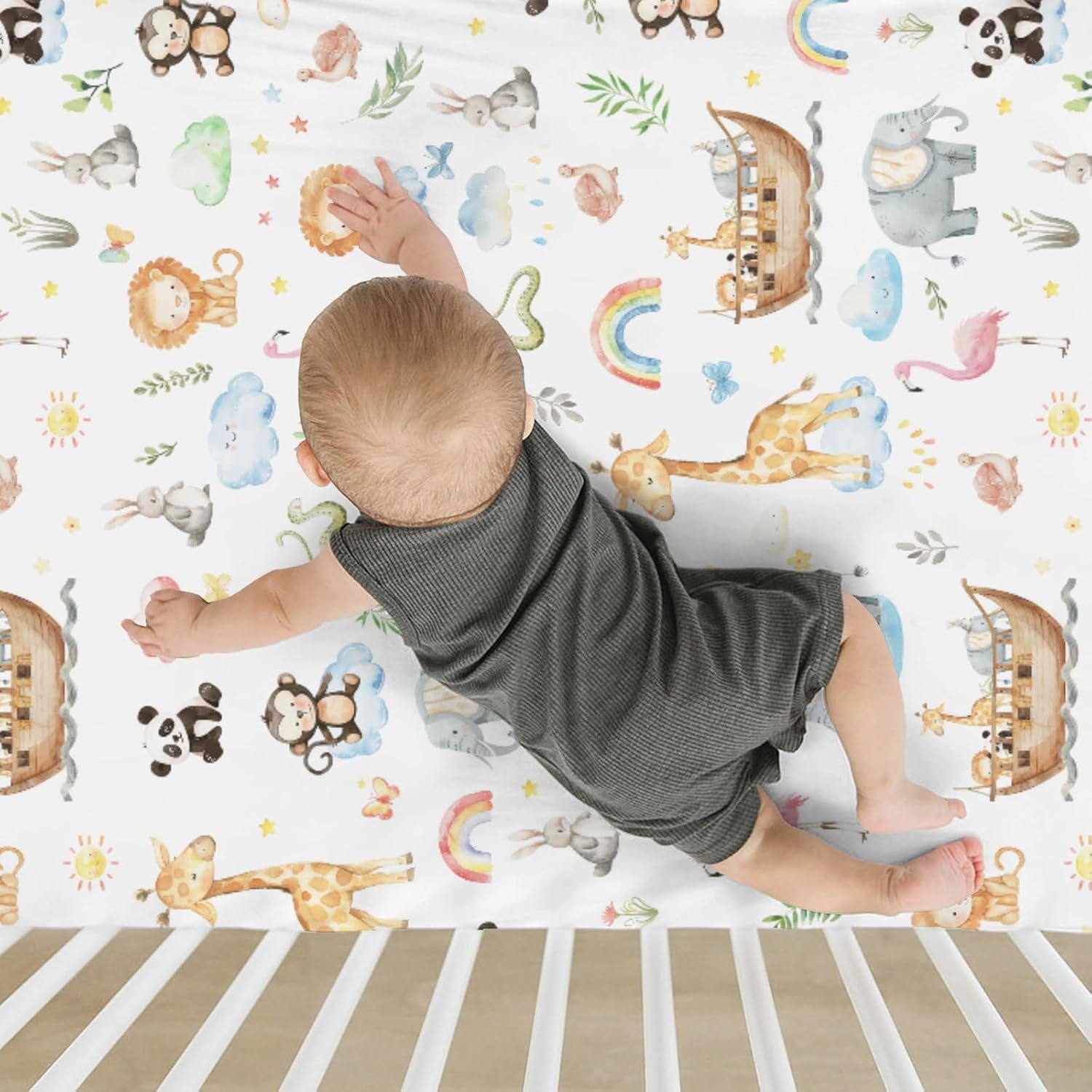 The baby crib sheet coordinates nicely with our matching nursery products for a one-of-a-kind accent. Our nursery collection includes baby blanket, baby changing pad cover, nursery valance, nursery rug, nursing pillow cover, car cover, and so on. With various cute prints, our crib sheets are perfect for any nursery theme. You can choose to match the different decoration of the room. These crib sheets create a cozy, secure sleep environment, promoting better sleep while blending with your decor. Crafted for both boys and girls, these sheets are a practical choice, ensuring better sleep for your baby day or night. Material: Our crib sheet is made of ultra soft silky polyester, carefully selected fabrics for baby, which is super soft, comfortable, and breathable, let your baby sleep peacefully all night long. Perfect Size & Snug Fit: Measuring 28 by 52 inches with 9 inches deep pocket and whole elastic bandage surround, our crib sheets can perfectly fit standard crib mattress or toddler mattress up to 9 inches. A whole strong elastic band at the bottom help keep the sheet stay flat right in place securely and snugly to create a safe and comfortable sleep environment for babies. Great Gift Idea: A practical and thoughtful gift for the baby shower, newborn, baby registry, birthday, Christmas, or any other special gift-giving occasion. Wash Instructions: These baby crib sheets are fade resistant and machine washable for easy care. Simply place them in the washing machine, set them on a gentle cycle with cold water and dry them on low heat or line dry.