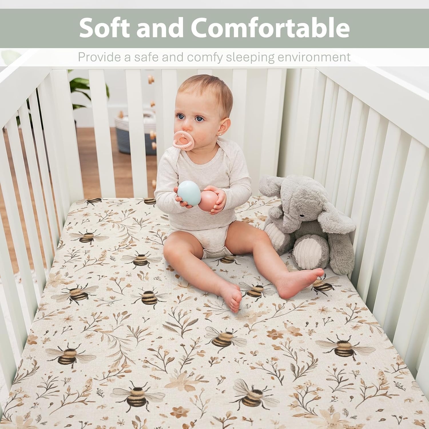 With various cute prints, our crib sheets are perfect for any nursery theme. You can choose to match the different decoration of the room. These crib sheets create a cozy, secure sleep environment, promoting better sleep while blending with your decor. Crafted for both boys and girls, these sheets are a practical choice, ensuring better sleep for your baby day or night. Material: Our crib sheet is made of ultra soft silky polyester, carefully selected fabrics for baby, which is super soft, comfortable, and breathable, let your baby sleep peacefully all night long. Perfect Size & Snug Fit: Measuring 28 by 52 inches with 9 inches deep pocket and whole elastic bandage surround, our crib sheets can perfectly fit standard crib mattress or toddler mattress up to 9 inches. A whole strong elastic band at the bottom help keep the sheet stay flat right in place securely and snugly to create a safe and comfortable sleep environment for babies. Great Gift Idea: A practical and thoughtful gift for the baby shower, newborn, baby registry, birthday, Christmas, or any other special gift-giving occasion. Wash Instructions: These baby crib sheets are fade resistant and machine washable for easy care. Simply place them in the washing machine, set them on a gentle cycle with cold water and dry them on low heat or line dry.