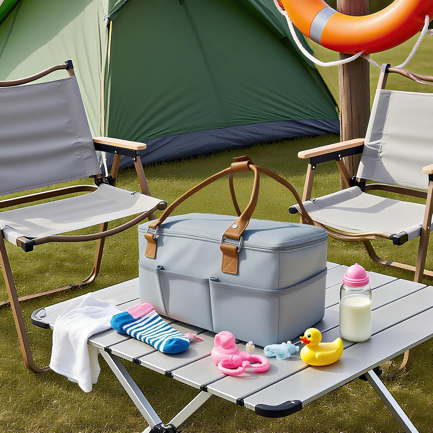 **GLIMOVA Extra Large Diaper Caddy Organizer**Introducing the GLIMOVA Extra Large Diaper Caddy Organizer, your solution for on-the-go parenting! With its **Extra Large Capacity**, this innovative organizer is designed to hold more than other competing diaper caddies, making it perfect for carrying all your essentials during outings and trips. No more worrying about running out of space—this caddy has got you covered!What sets our caddy apart is the **Convenient Changing Mat** included in the design. This built-in mat provides a comfortable and clean surface for quick diaper changes, ensuring that you can handle any situation with ease, whether at home or on the move.We understand the need for versatility, especially during outdoor adventures. That's why our Diaper Caddy Organizer features a **Waterproof Interlayer**, making it suitable for beach trips or any outing where spills may occur. You can enjoy your day out without the fear of mess ruining your essentials!Durability is key, and unlike flimsy diaper totes, the GLIMOVA caddy boasts sturdy walls and dividers along with **PU Leather Handles**. This ensures reliable support and easy portability around the house or on road trips, providing you with a long-lasting companion for all your diapering needs.