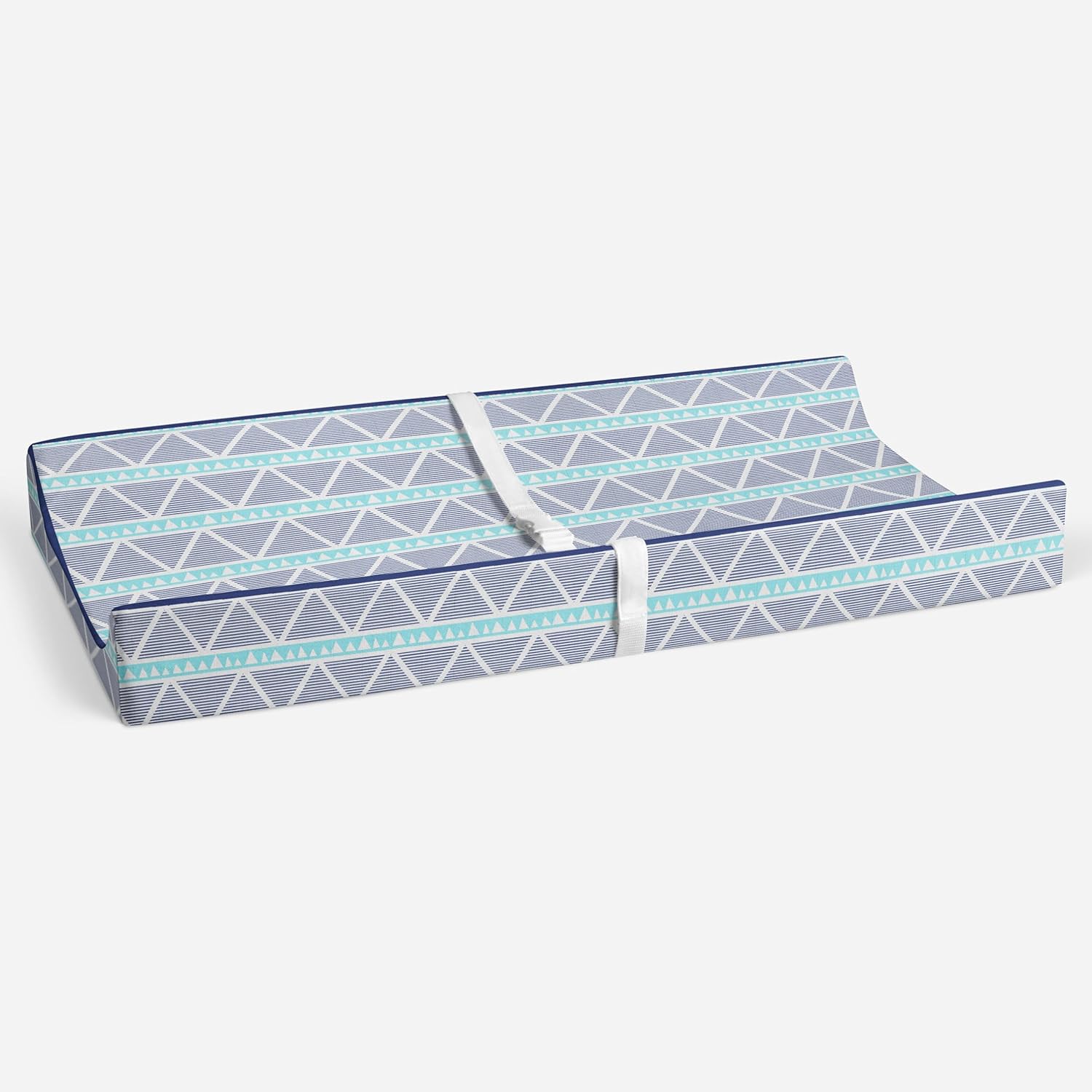 Bacati - Noah Tribal Quilted Top 100% Cotton Percale with Polyester Batting Diaper Changing Pad Cover, Aqua/Navy Large Triangles : Quilted top with soft fill offers supreme cushioning for baby. It is accentuated with chorded edge to make it look perfect. Fits all US standard regular Changing pads as well as contoured Diaper Changing Pads. 100% Cotton Muslin shell with poly fill and elastic all around. Holes on the sides for the belts on the Diaper Changing Pads. Machine washable and gets softer with every wash. Changing pad cover size: 16 x 32 inches with 6 inches gusset. It can be coordinated with Bacati - Tribal/Aztec Bedding Collection. Cotton is a green fabric as it is renewable resource and biodegradable. Cotton is inherently soft on the delicate skin of babies as well as durable and user friendly. Cotton's gentle quality makes it appropriate for babies with very sensitive skin or skin allergies.