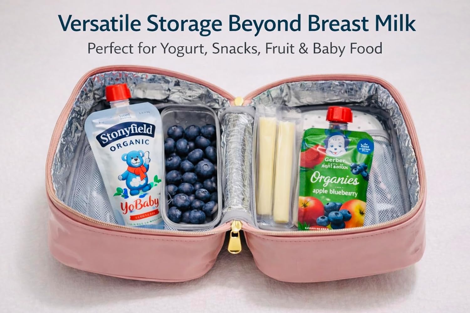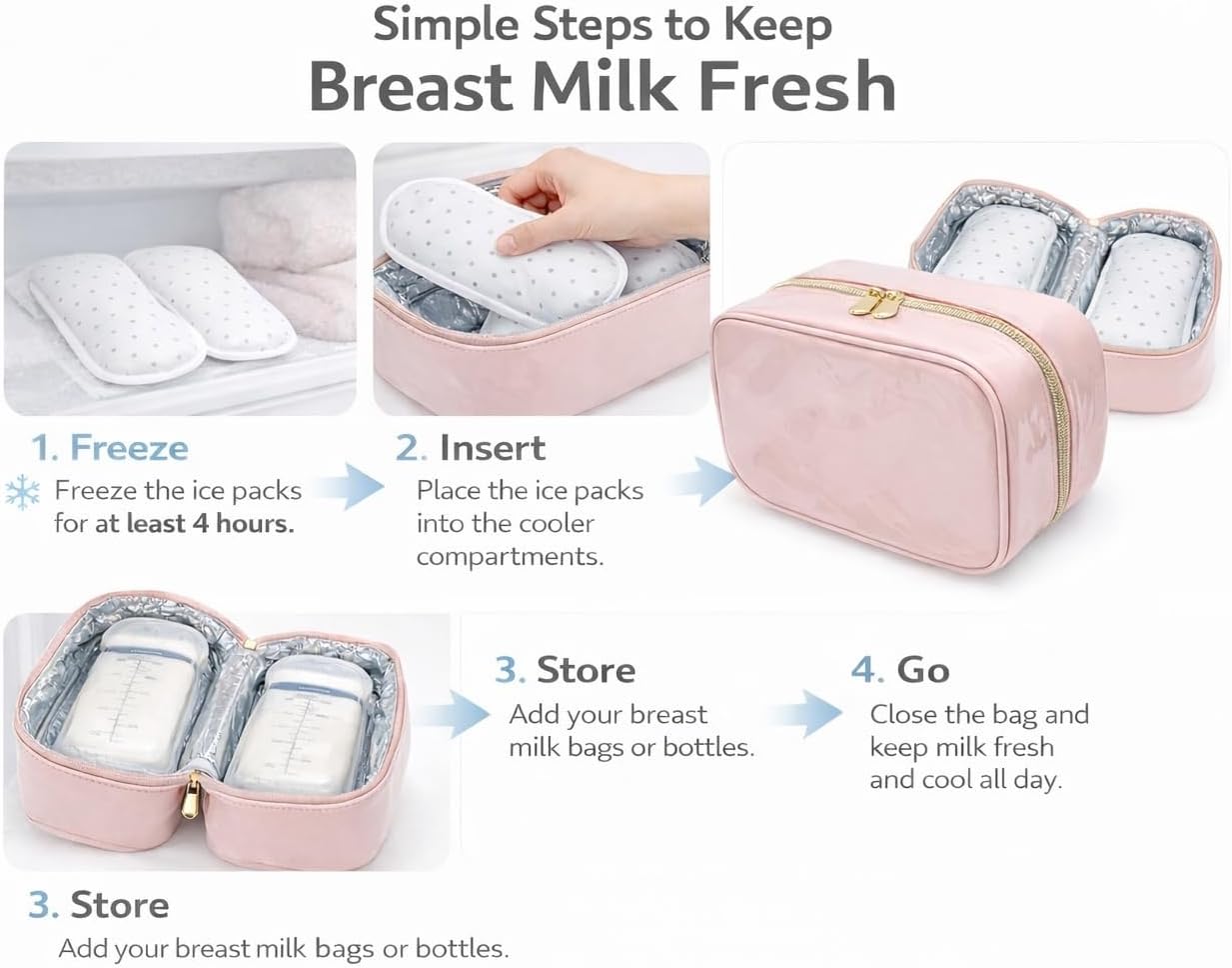 This modern thermal breast milk cooler bag is equipped with two ice bags with the ideal size to guarantee the freshness of your “golden liquid” at all times without the need to purchase additional accessories. The interior of our portable travel bag coated with High quality aluminum offers superior thermal insulation combining functionality with elegance, its waterproof exterior prevents ice packs from leaking or melting over time. Our breast milk carrying bag with a long cooling performance of up to 8 hours. It will ensure that your baby receives milk at the optimal temperature no matter how much time you spend away from home. In addition, our nursing bag is waterproof and easy to clean since it was manufactured with the busy life of mothers in mind. our breast milk storage bag It has the capacity to store up to 6 bags of breast milk with its two included ice packs. Our nursing travel bag It is perfect as a Baby Shower gift, this portable cooler Breast milk bottle is a useful addition to a newborn baby's must-haves, moms-to-be appreciate receiving this stylish cooler bag. This cold pot with its two ice packs is suitable for long trips and has a sleek, lightweight design that makes it easy to carry in a diaper bag or backpack, ideal for moms who need mobility without compromising capacity. Ideal for moms on the go: Whether you're working, traveling, or doing any other activity outside the home, this breastfeeding cooling bag It is the perfect companion to keep breast milk fresh and ready to feed your baby. Make your life easier with this maternity essential! Multifunctional cooler: This small thermal bag is ideal for transporting frozen breast milk, using it as a snack bag, storing juices or jams, or keeping medicines at a low temperature. It is an excellent option for daily use and various needs.