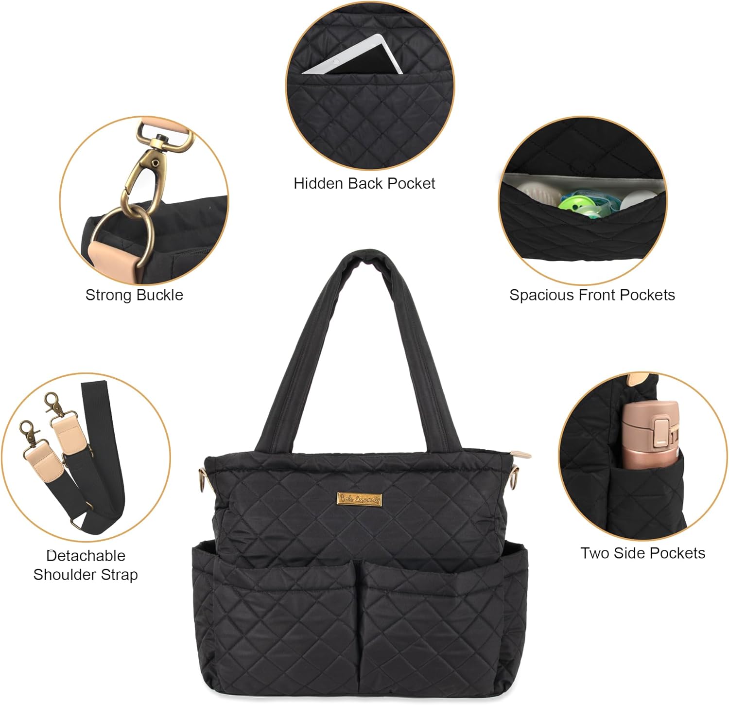| Model Name | Quilted Diaper Bag Crossbody Tote Purse With Shoulder Strap, Changing Pad, 10 Organizer Pockets for Twins Or Triplets |
