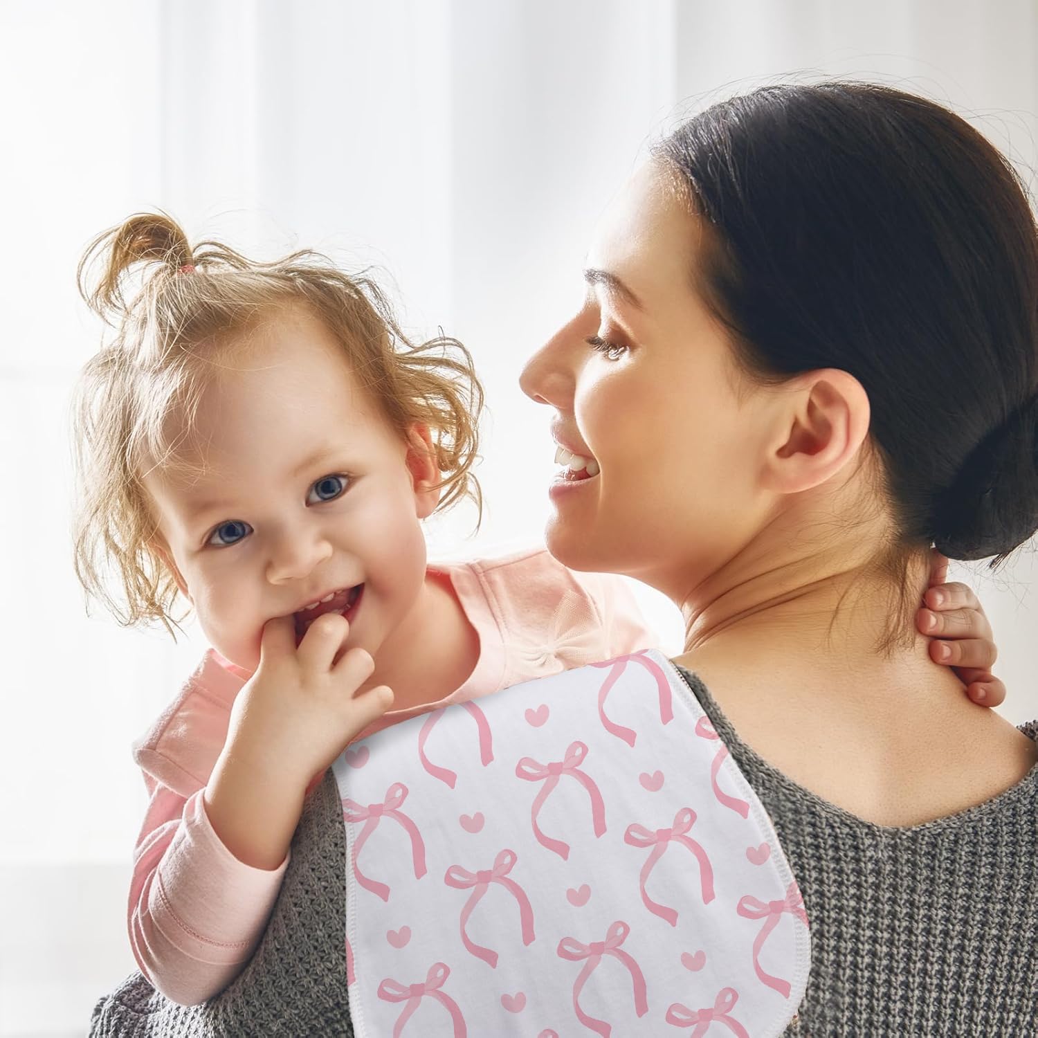 4 Pack Pink Bow Baby Burp Cloths Soft Absorbent Spit up Rags Cherry Burp Cloths Pink Burping rag for Boy Girl Newborn Gifts Nursery Decor, 19 x 9 Inches