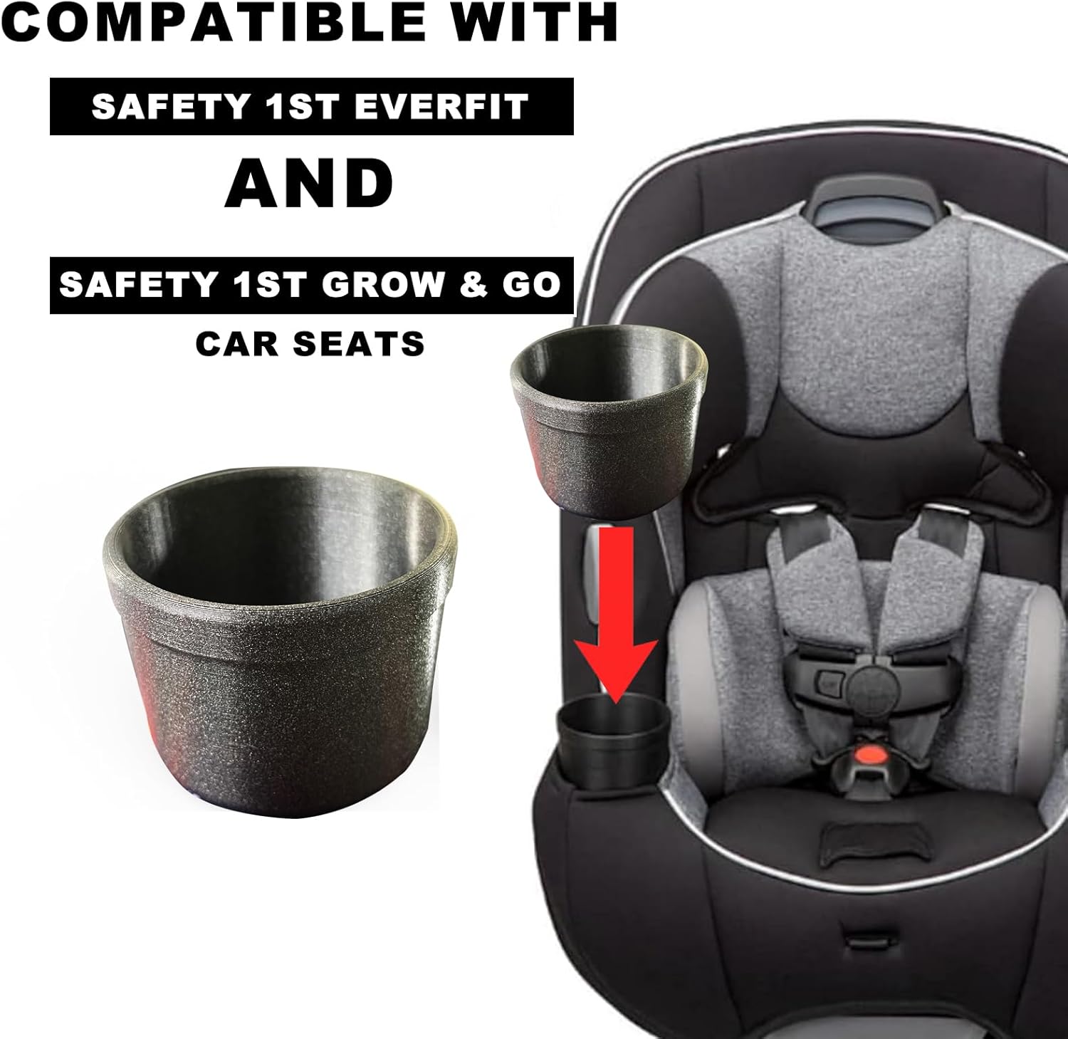 This product is a Cup Holder compatible with Safety 1st Everfit & Grow and Go Car Seat. It is a single cup holder, designed as a replacement part for Safety 1st car seats.Compatibility : This cup holder is compatible with Safety 1st Everfit & Grow and Go Car Seat. It is a perfect replacement part for your Safety 1st car seat, ensuring a proper fit and function.Convenience : It provides a convenient place to hold drinks or small snacks while your child is in the car seat. This makes the car ride more comfortable and enjoyable for both you and your child.Durability : Made of high - quality materials, this cup holder is durable and can withstand daily use. It is designed to last for a long time, providing you with a cost - effective solution.Easy Installation : It is easy to install and remove. You can quickly attach it to your car seat without any special tools or skills, making it a user - friendly accessory.Imagine you are on a long car trip with your child in the Safety 1st Everfit & Grow and Go Car Seat. Your child wants a drink or a snack, but there is no place to put it. With this cup holder, you can easily attach it to the car seat and provide a convenient spot for your child's drink or snack. It keeps things within reach and prevents spills, making the journey more pleasant. Whether you are going on a short trip or a long one, this cup holder is a practical accessory that enhances the functionality of your Safety 1st car seat. It is also useful for everyday use, such as running errands or going to school, providing a convenient place for your child's belongings.