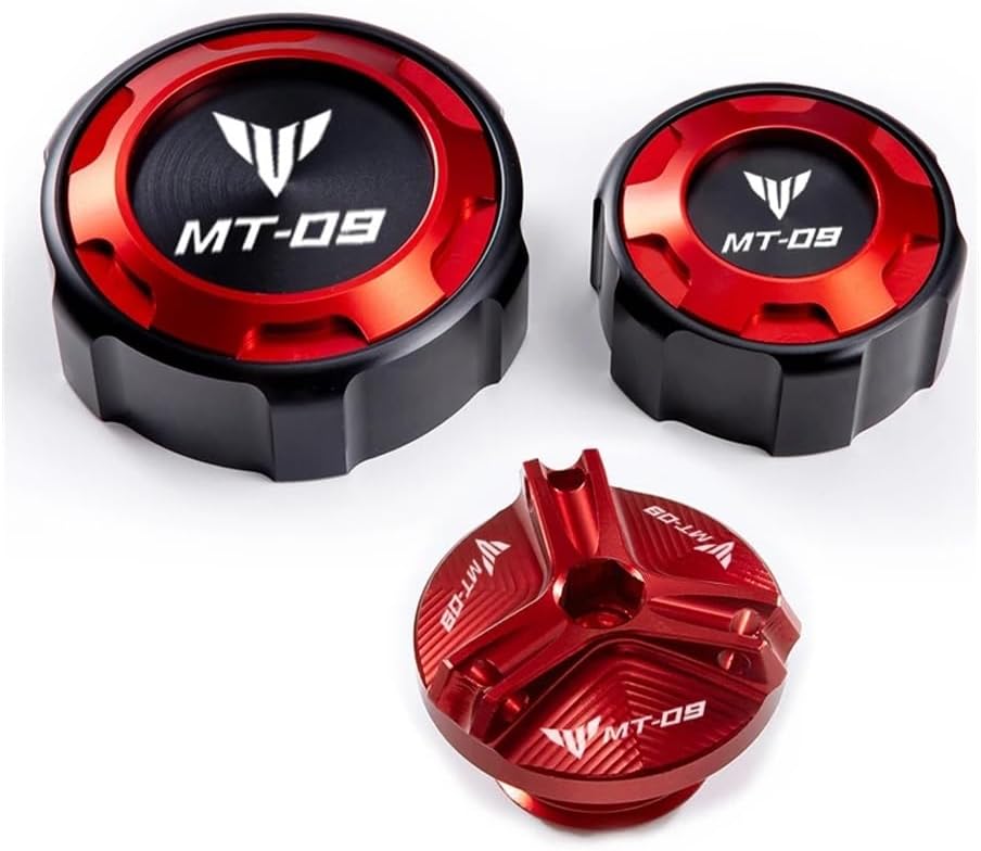 Hello. Welcome to our motorcycle accessories store.For Yam&aha MT 09 MT-09 mt09 sp 2021-2023 Motorcycle Accessories CNC Front and rear brake fluid cap protection and oil filler capFront + Rear Brake Fluid Master Cylinder Reservoir Cover + Oil Fill Port Cover (3-Piece Set)-Material: CNC anodized 6061 aluminum-Full CNC machining sliderCompatible Models:For Yam&aha MT 09 MT-09 mt09 sp 2021 2022 2023Check the matched model by yourselfPlease make sure it fits your motorcycle before buying!Notice:Before buying, please compare your motorcycle models, our products are consistent with previous models.