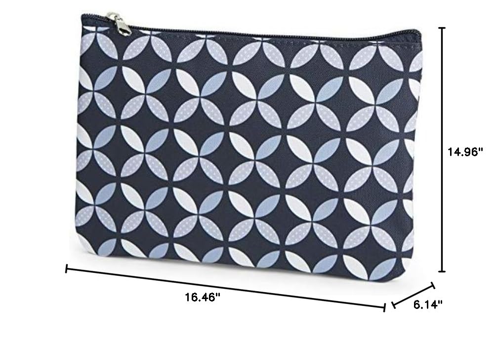 The Baby Boom ivy 4Piece tote Diaper Bag set is the ultimate organization solution for all of baby's and mom's essentials. This amazing set includes a large tote bag in a stylish Navy and white geometric print that provides plenty of storage for all your baby care needs and personal belongings for a day out or an overnight trip with baby. A spacious interior with one interior pocket and five exterior storage pockets including bottle pockets keep you organized. Long double shoulder straps make it easy to carry in comfort. A coordinating accessory pouch, removable changing pad and bonus pacifier holder complete the set and help you multitask no matter where you and baby go.