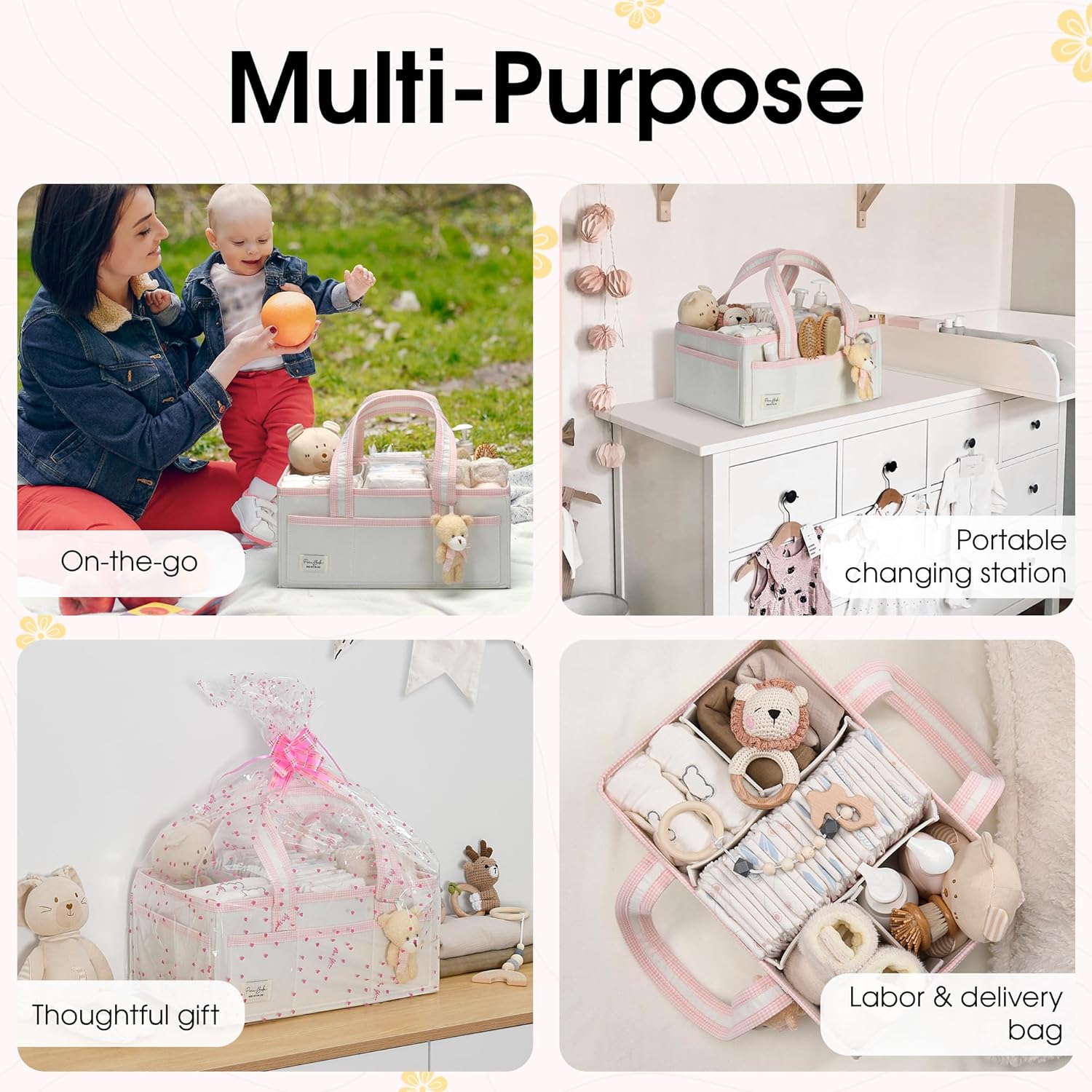 | Specific Uses For Product | Car Diaper Caddy for organizing baby items while on the go. Newborn Essentials Tote to carry baby care items from room to room or during travel. Mom and Baby Organizer to keep everything from bibs to lotion within reach. Breast Pump Storage Caddy for storing pump parts and accessories., Diaper Storage Organizer for keeping diapers, wipes, creams, and changing essentials neatly arranged. Baby Nursery Organizer to hold newborn must-haves like pacifiers, bottles, burp cloths, and baby clothes. Changing Table Organizer for easy access during diaper changes. Baby Shower Gift Basket — can be filled with baby girl or baby boy essentials |