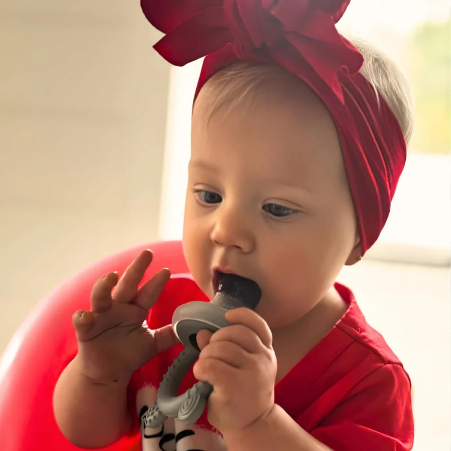 Created with input from TalkTools feeding therapists, this two-piece silicone feeder supports starting solids for baby essentials and confident baby feeding from the first tastes. The fine-opening pouch offers small tastes of fruit, cooked vegetables, and purées, working as a baby fruit feeder, fruit pacifier feeder, and baby fruit food feeder pacifier for more control and less mess. A raised rim helps it stay securely closed, and the easy-grip ring handle is comfortable for little hands and doubles as a baby teether for teething relief. For teething days, use the included tray as popsicle molds and breastmilk popsicle molds for teething to prep frozen portions. Serve a breast milk popsicle teether in the pouch for a soothing teething popsicle for baby, or use it like a cool teething pacifier option with adult supervision. Dishwasher and microwave safe, and can be sterilized by boiling. A great fit for baby eating essentials and baby feeding essentials, plus a smart pick for 4 month old baby must haves, teethers, and baby deals.