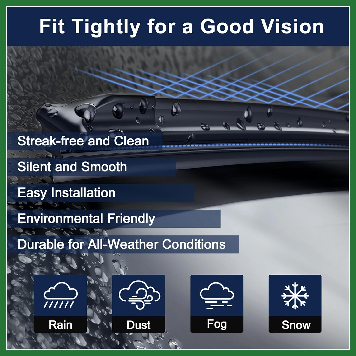 Description:Stable performance: Strictly in accordance with quality control standards, with stable characteristics and performance.Reliable quality: No-Streak, Silent. Made of reliable quality material, our wipers enable smooth operation and low noise for all seasons. The wear-resistant rubber wiping edge contributes to longer service.Direct fit: Easy installation for your old or broken wiper blade and wiper arm, easy to install.Please check your make and model year according to our picture and description before a purchase.This is a non-OEM product, accessory only!Specification:Driving Type: Left DrivingMaterial: Silicone, PlasticTechnology: Hydrophobic Coating WiperColor: BlackMounting Type: Top-Lock (Not J / U Hook)Blade Size 1(Driver Side): 66cm/ 26"Blade Size 2(Passenger Side): 48.3cm/ 19"Fitment:for Maserati Quattroporte 2012-2023for BMW 7 Series G11 G12 2015-2022for Jaguar F-Pace 2016-2024for Volvo V40 2012–2019for Volvo C70 2006-2010Package Included:1 Pair Windshield Wiper Blade
