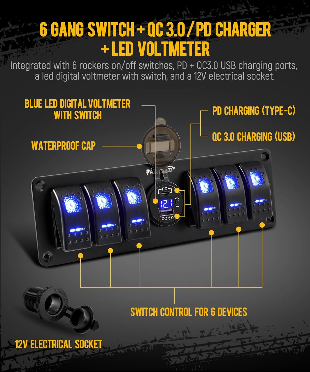 | Model | Partsam 6Gang Blue Rocker Switch |