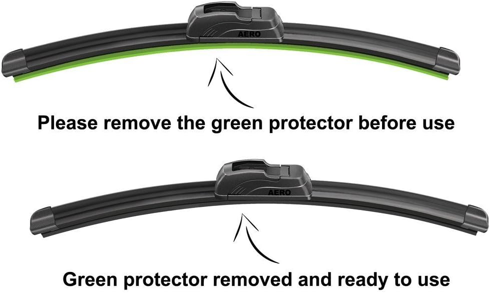Each purchase includes 3 genuine AERO premium all-season soft wiper blades. The AERO wiper is patented using top quality materials and strict QC testing. This product offers all the quality and durability of the major brand names, but at a fraction of the cost. All AERO wipers come with a 6 months warranty - the best in the industry. AERO Wiper Specifications: Item: Genuine AERO premium all-season wiper blades Quantity: 3 pieces - 1 driver side wiper, 1 passenger side wiper, and 1 rear wiper Fitment: J-Hook (Direct OEM replacement) Material: Premium natural rubber with DuPont Teflon coating Design: Beam Frameless/Bracketless Temperature Tolerance: +158F to -40F (+70C to -40C) Wiping Durability: 1 million times of wiping Patented: Yes Warranty: 6 months AERO Wiper Features and benefits include: The improved flexible spine design fits the windshield better, providing superior windshield contact and consistent wipes year round. Eliminates the need for a snow or summer blade. Sleek, aerodynamic cover helps prevent snow, ice or debris buildup. Smooth and quiet operation in all weather conditions. *** Please Note *** To minimize the unnecessary consumption of paper, we will not ship the wipers in a carton box. We will ship the wipers in the manufacturer box and wrapped in a plastic bag. The safe arrival of the wipers is guaranteed. Thanks.