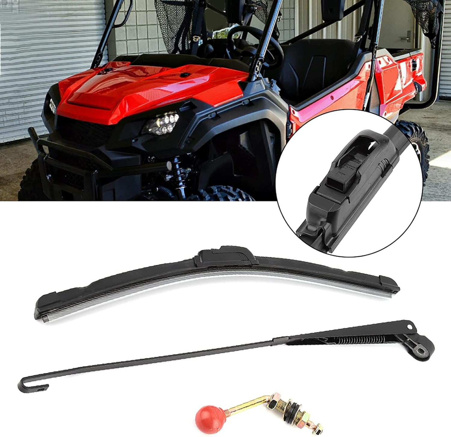Spec:Features:This is universal manual windshield wiper set for most UTV.Made of high quality Metal and Plastic material,durable in use.Low noise and no scratch, protect the of your car.It fits for hard coated polycarbonate windshields or glass windshields of most UTV.You need to drill a 1/2 inch hole in your windshield to mount it.Specifications:Condition: Brand NewMaterial: Metal+PlasticColor: Black(as pictures show)Arm Length: Approx.450mm/17.7inchWipe Blade Length: Approx.400mm/15.7inchPackage Weight: Approx.312g/11ozPackage List:1 * UTV Manual Windshield Wipe Set(3 * Structural Parts)Note:The real color of the item may be slightly different from the pictures shown on website caused by many factors such as brightness of your monitor and light brightness.Please note that the new type and old type of this product will be sent randomly, and sure you will not mind before ordering.