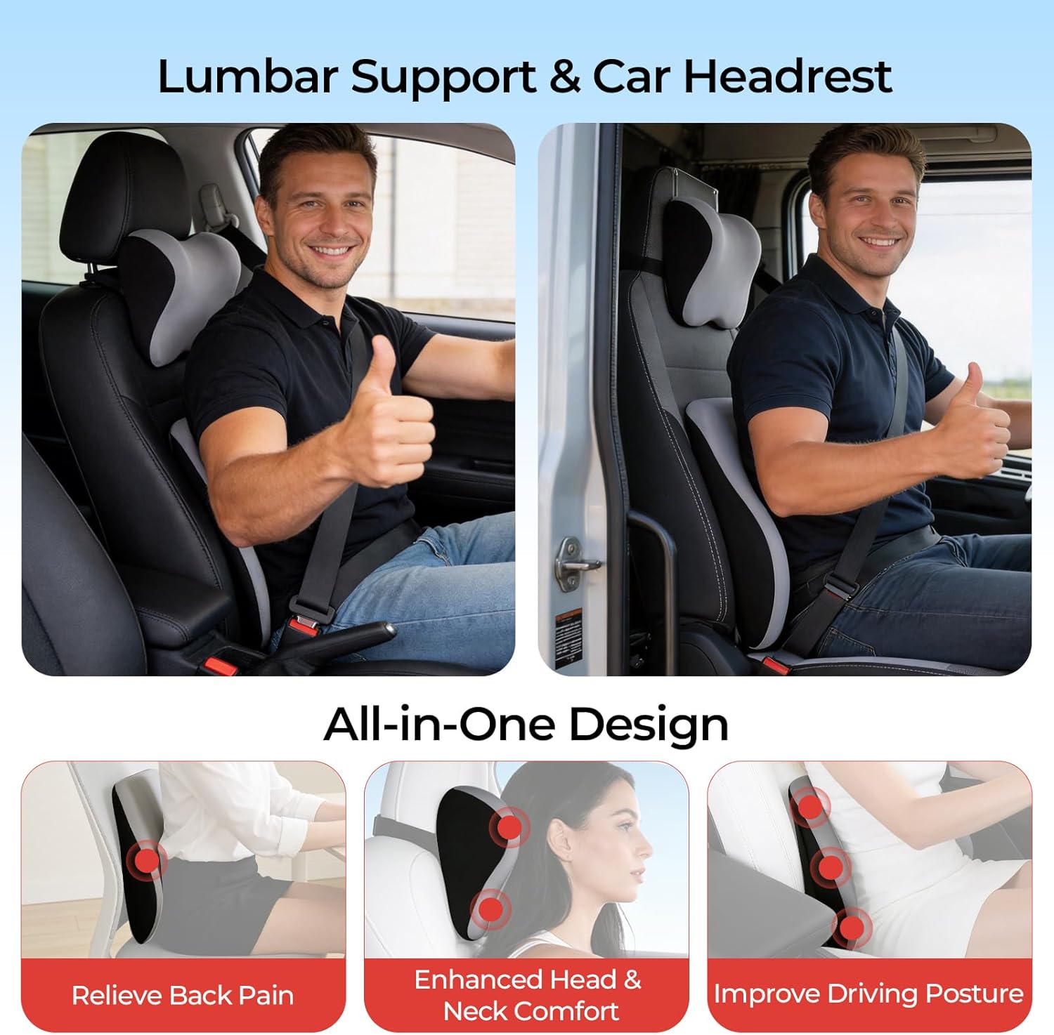 This ergonomic seat cushion and lumbar support set is widely suitable for cars, trucks, SUVs and office chairs. Made of breathable memory foam, it fits your body curve perfectly, distributes pressure evenly, and relieves back, sciatica and coccyx pain. The non-slip, washable and rebound design ensures long-lasting comfort, effectively reducing fatigue from prolonged sitting. Great for long-distance drivers, office workers and daily use.