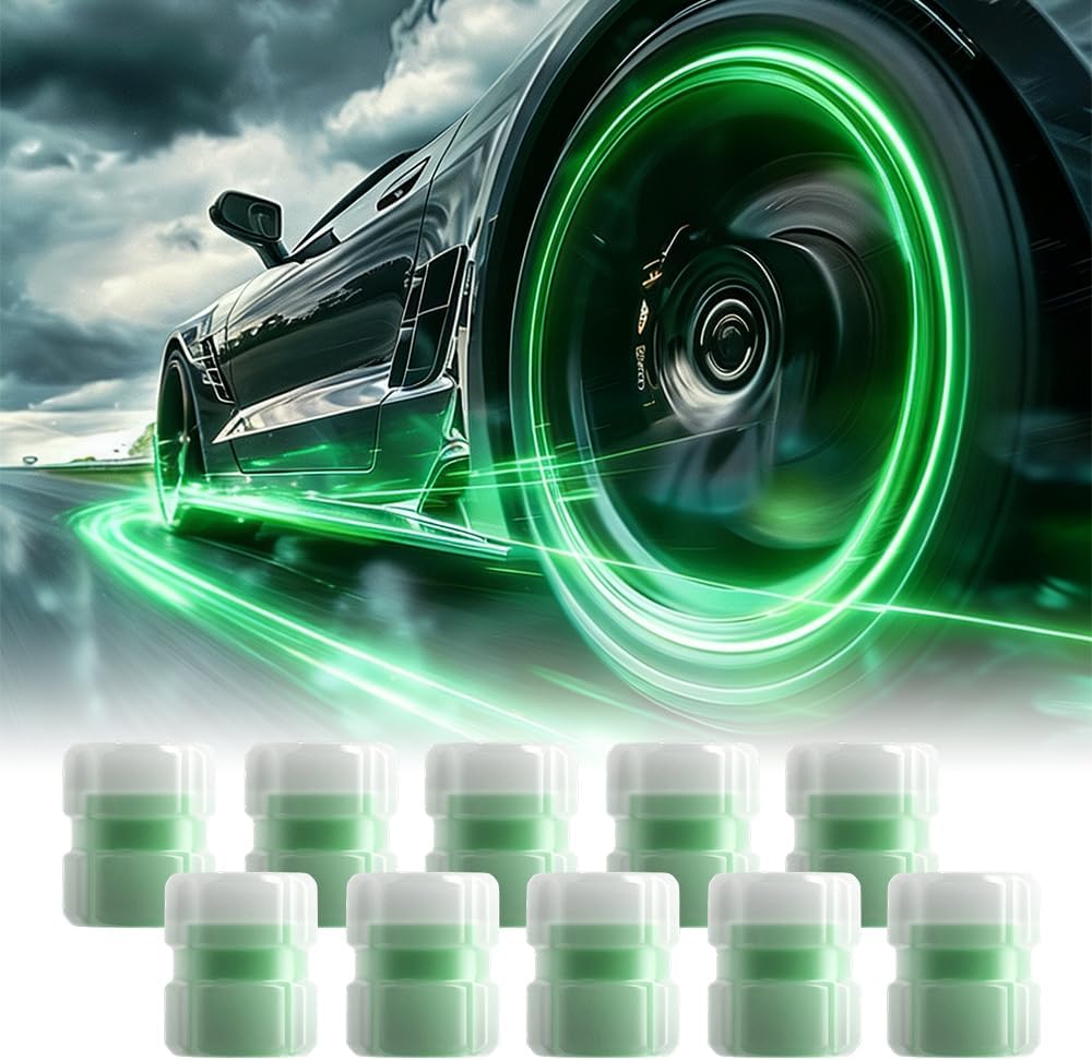 2026 Upgrade Glow in The Dark Tire Valve Caps Fluorescent Tire Valve Stem Caps, Cool Car Present for Universal Decoration Accessories for Car SUV Bicycle Motorcycles Trucks①High-Quality ABS Construction – Strong, durable, and resistant to cracking, ensuring long-term protection for valve stems.②Long-Lasting Luminous Effect – Glows brightly for hours after brief sunlight exposure, ideal for nighttime visibility.③Compact Size with Standard Fit – Each cap measures 0.63"" x 0.47"" with an 8mm thread hole, compatible with most vehicles.④Two-Piece Snap Design – Allows quick assembly and a secure seal to prevent loosening during driving.⑤Versatile Multi-Vehicle Use – Works seamlessly on cars, SUVs, trucks, motorcycles, and bicycles.💌 Matters Needing Attention:♥Due to Different Shooting Angles or Light, There Will Be Errors in Color.♥There May Be 1-3cm Error Due to Manual Measurement.♥If You Have Any Questions, Please Contact Us, We Will Reply You Within 24 Hours