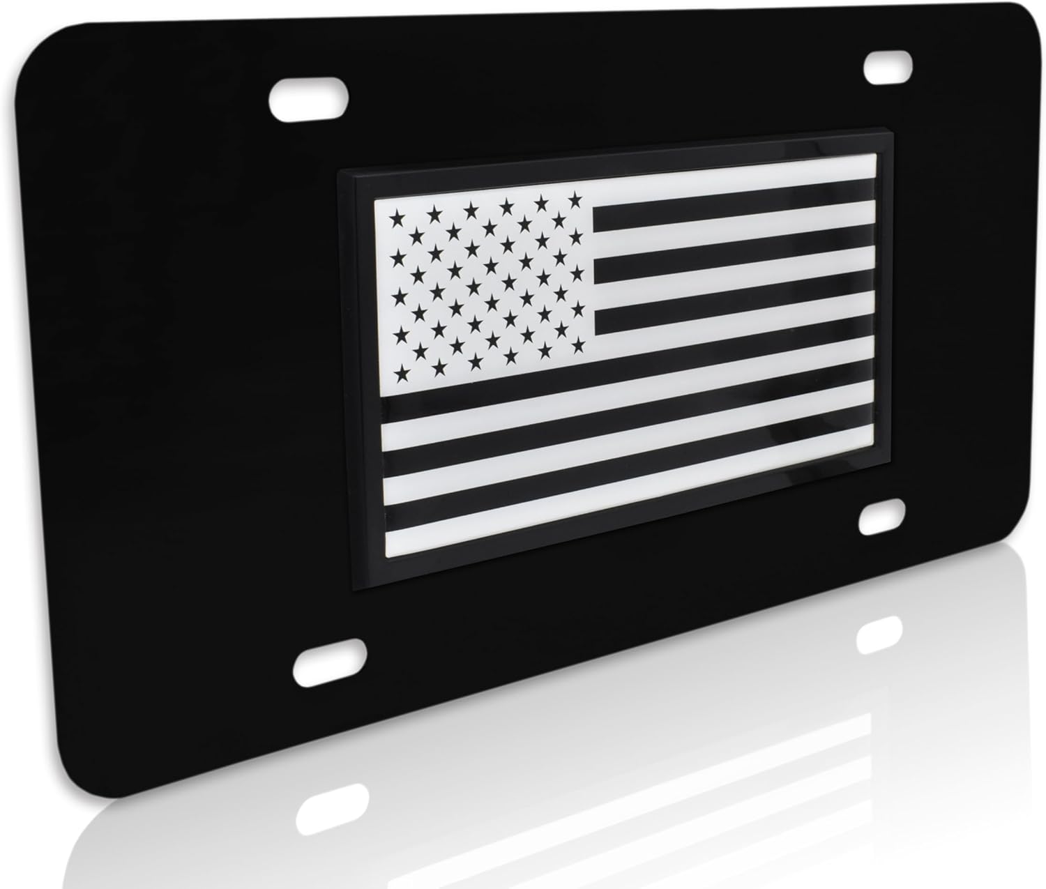 Show your patriotism with this Inverted Black & White United States of America Flag all-metal Black decorative front plate (12” x 6”) by Elektroplate. Comprised of a 3D Made in the USA domed decal with OEM frame adhered to a high-grade black powder coated license plate base via automotive-grade durable foam tape. This heavy-duty, decorative plate and affixed logo are UV protected made to withstand harsh outdoor weather conditions and will look brand new for years to come. Our high-end auto accessories are the perfect way to showcase your pride everywhere you drive. In addition, all Elektroplate products are packaged in elegant retail packaging to make a great gift!