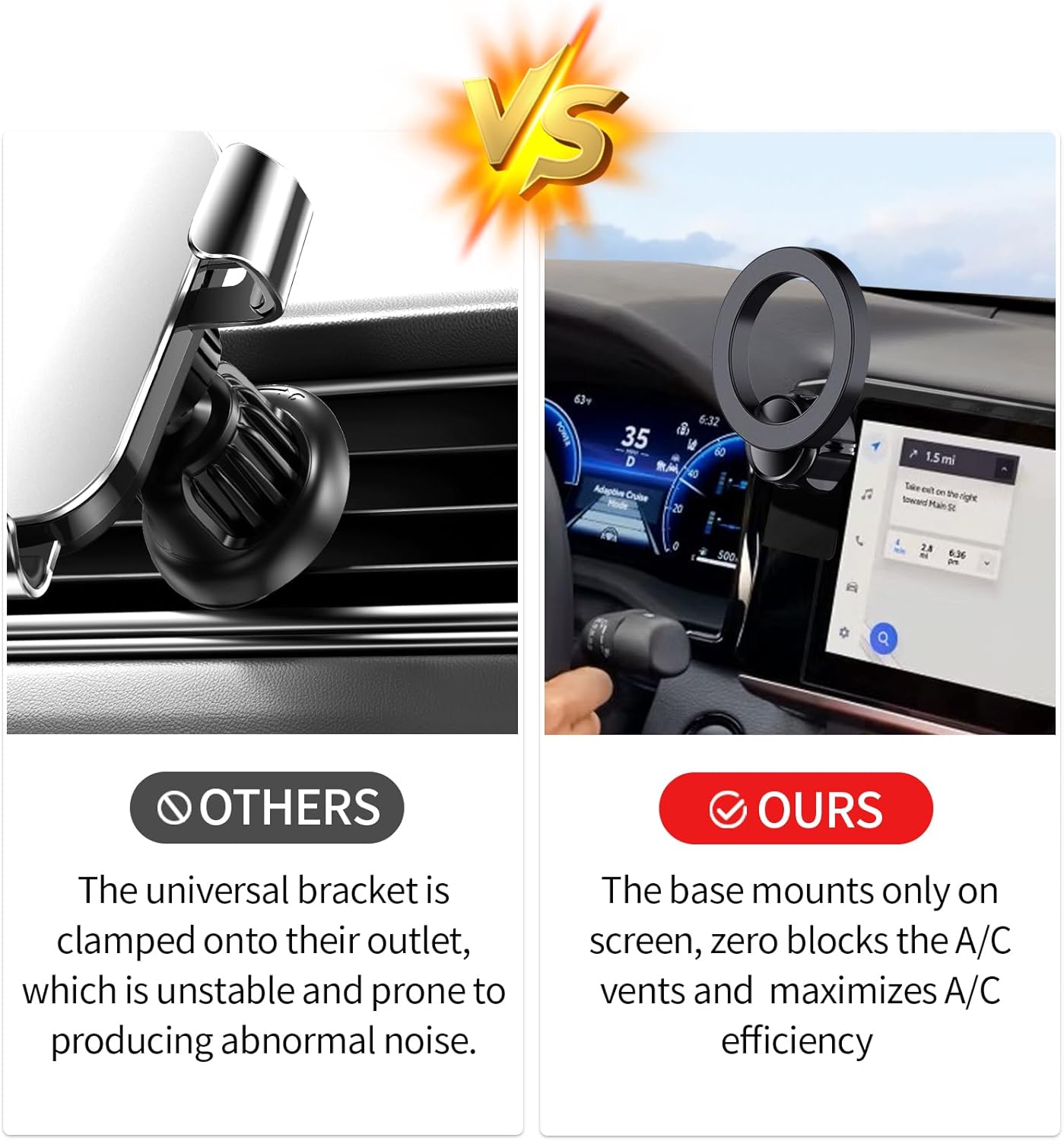 | Additional Features | Strong Magnetic Adsorption(Magsafe), One-Hand Phone Attachment & Releasel, Don't Affect Air Vent |