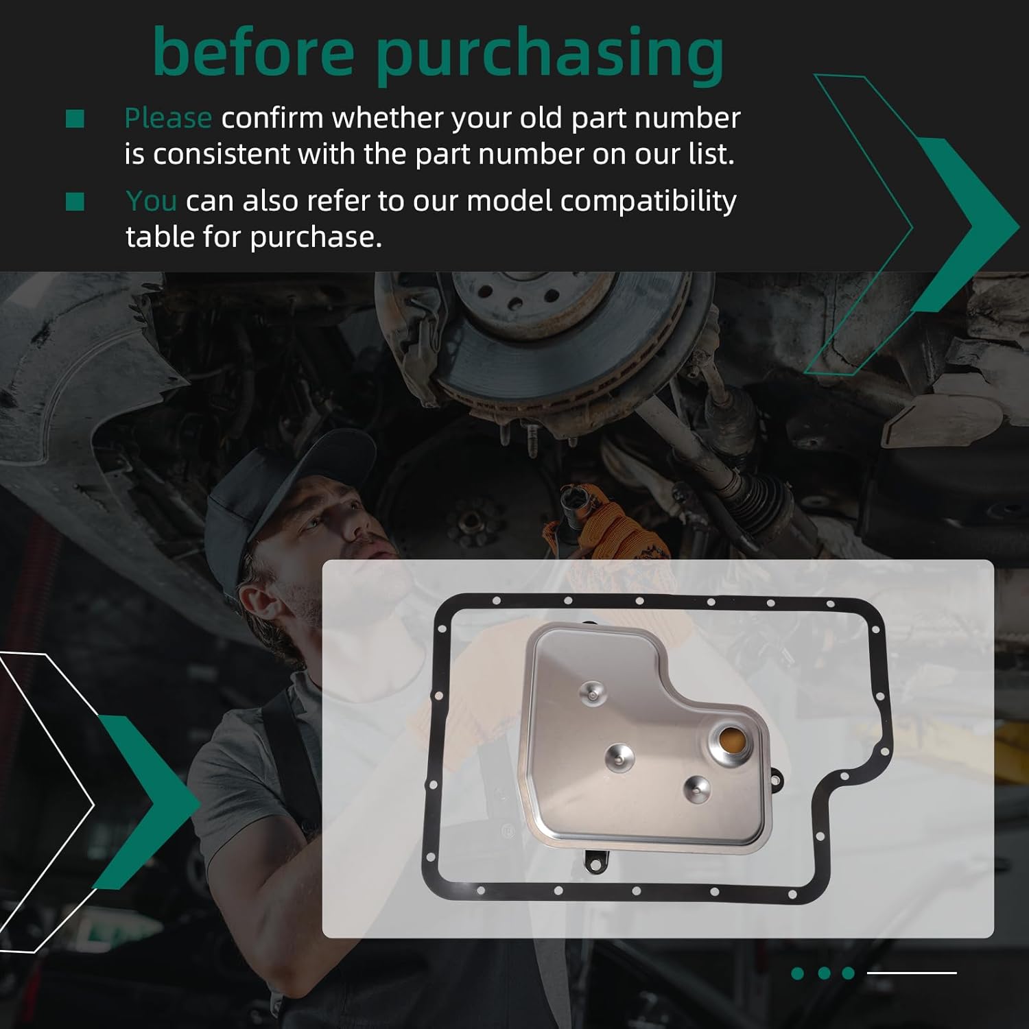 【Applicable Model】Transmission Filter w/Gasket Fit for Ford F-150 6.2L V8 2012-2017; for Ford F-250 Super Duty 6.2L 6210CC / 6.7L 6651CC 2011-2019; for Ford F-350 Super Duty 6.2L 6210CC / 6.7L 6651CC 2011-2019; for Ford E-350 SUPER DUTY 6.2L V8 / 6.8L V10-Gas 2017-2019【Replacement Part Number】BC3Z-7A098-B, BC3Z7A098B, FT187; F6TZ-7A191-A【In the Package】:1 x includes filter pan and gasket【Main Feature】Maintain the normal operation of the entire vehicle transmission system to enable the car to run more smoothly【Notes】Different engine models have specific design and size requirements. When selecting the replacement parts, please ensure that our products match your model, please check the car model and OE number and use the Adapter