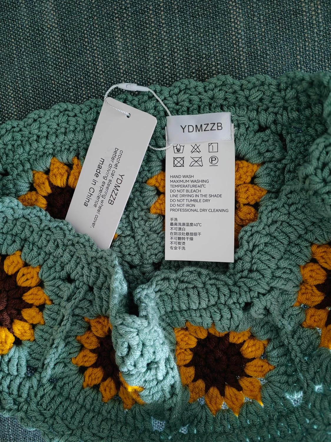 Handmade crochet sunflower steering wheel cover,it is very lovely and cozy, fits a standard steering wheel 14-15in diameter. the cover fit all types of steering wheels and it is slip resistant , because it is elasticity,also have needle and yarn fixation. the seat belt covers with buttons attach those to your seat belts,make sure it's the right size for your car. it also can as gift ,for mother's day gift ,father's day gift ,Christmas gift,for a very close friend of you. Colors can be customized, If you have question,please tell us,have a good shipping
