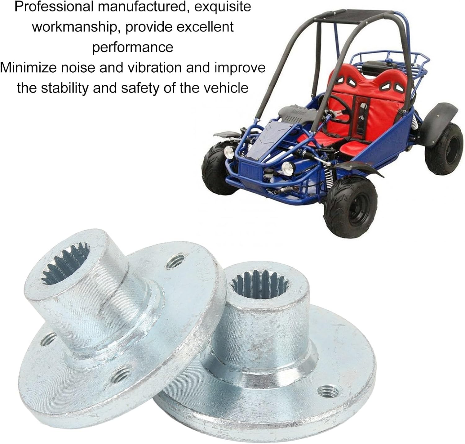 Features:1.Made from high-strength steel alloy for high hardness and strong impact resistance, preventing deformation and rust for long-lasting durability.2.Designed to fit seamlessly with 5-inch tire-equipped vehicles like Quad Bikes and Go Karts, ensuring optimal performance.3.Minimizes noise and vibration, contributing to improved stability during operation, crucial for safe driving.Item Type: 3 Stud Rear Wheel Hub ShaftMaterial: Steel AlloysTwo Hub Axles: Rear, left and rightNumber of Hub Shaft Teeth: 17TBearing Bore Diameter: Approx. 17mm / 0.7inHub Mounting Hole Spacing (center to center): Approx. 48mm / 1.9inFitment: Applicable for Quad bike ATV dune go kart with 5 inch tiresPackage List:2 *3 Stud Rear Wheel Hub Shaft
