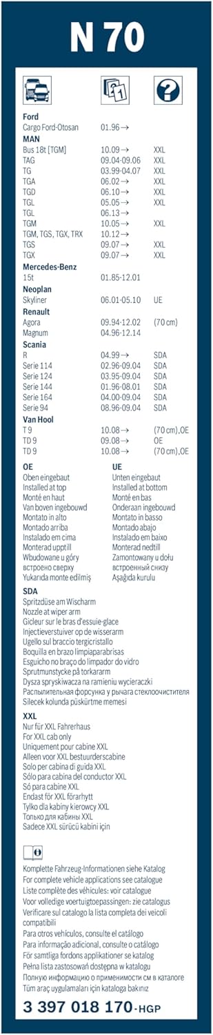 For effective windshield cleaning with a smooth action and high durability wrapped in a conventional metal frame design, choose Bosch Twin Truck wiper blades. Bosch Twin Truck wiper blades feature a smooth-glide coated dual-material rubber wiper edge that ensures quiet operation for a safe and peaceful drive in all weather conditions. Twin Truck's Quick-Clip universal adapter allows fitment to many vehicles with hook-type wiper arms. NOTE: Enter vehicle Type, Year, Make, and Model into fit checker above to ensure compatibility - due to wiper arm variations, it is no longer possible to choose replacement wiper blades by length only.