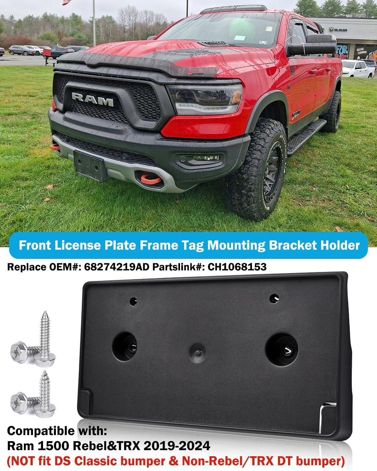 Specification: Brand new Color: Black Applications: Fit for 2019 RAM 1500 TRX & Rebel 2020 RAM 1500 TRX & Rebel 2021 RAM 1500 TRX & Rebel 2022 RAM 1500 TRX & Rebel 2023 RAM 1500 TRX & Rebel 2024 RAM 1500 TRX & Rebel Easy to install and use. Durable in use. Package included: 1pc x License Plate Bracket and Screws