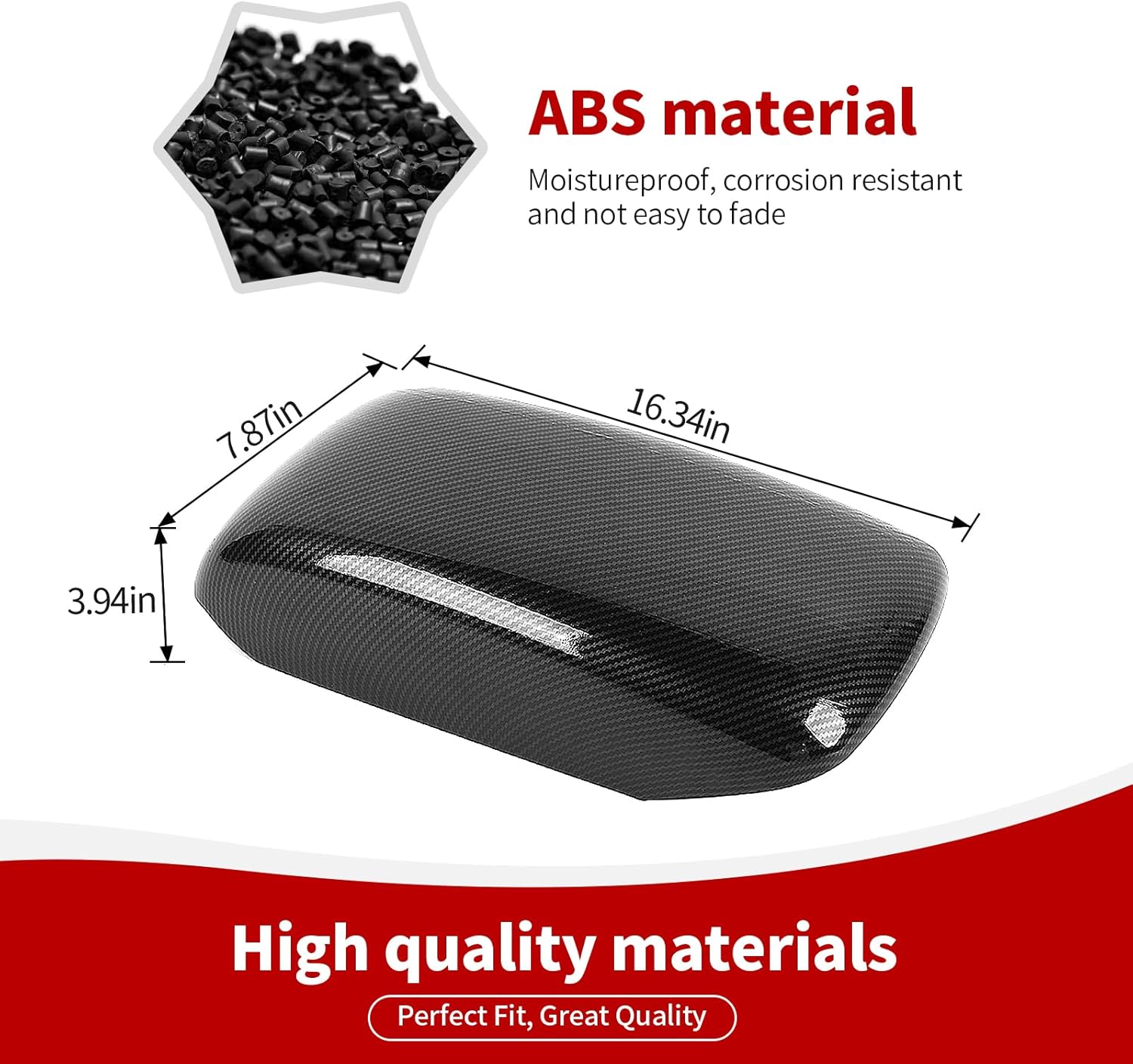 Model: -Compatible with Dodge Durango 2011 2012 2013 2014 2015 2016 2017 2018 2019 2020 2021 2022 2023 2024 up. -Compatible with Jeep Grand Cherokee 2011 2012 2013 2014 2015 2016 2017 2018 2019 2020. Product Information: -Color: Carbon Fiber -Material: ABS Package Includes: -for Durango Center Console Armrest Cover About Installation: 1. Using alcohol, clean the surface and keep it dry without water and dust. 2. It is best to heating the tape with hair dryer or baking gun, then tear off the double-sided tape behind it and stick it to the corresponding position. 3. Press firmly for a minute or so to better secure the lid in place.