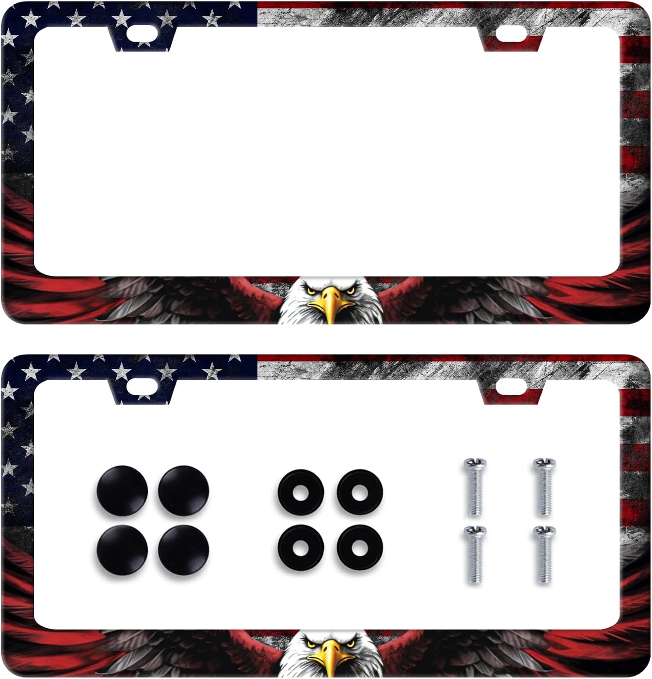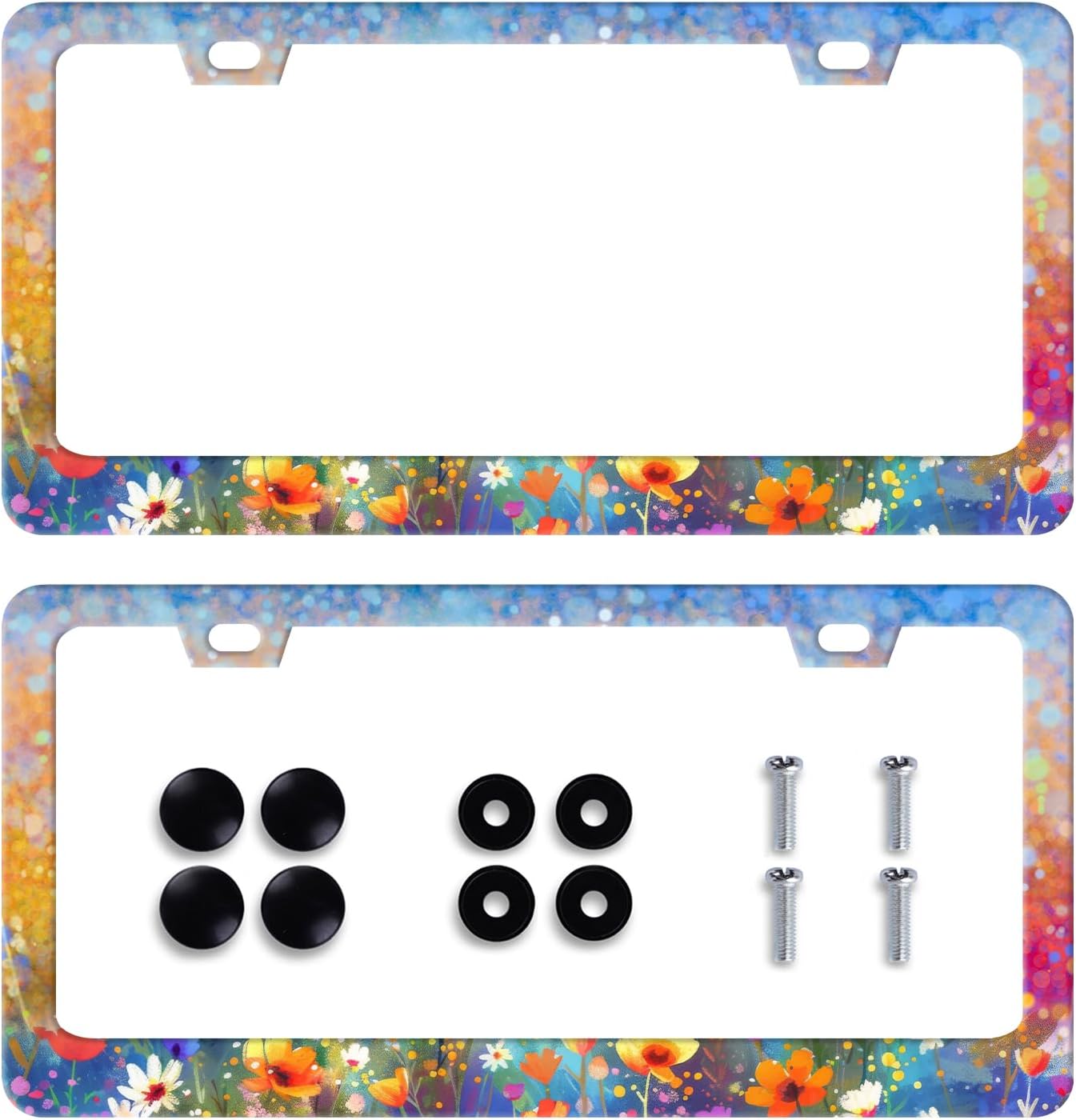 Our 2PCS License Plate Frame,Fashion Print Design,When you drive on the road, you will be a beautiful scenery on the road!made of Stainless steel, which ensures that the plate frame will never wear out. Personalized Car Frame Can Perfect to Put on Your Front or back of Car,Decorate your car to make it look moreOur license Plate Frame is Available For All standard Size 12.3" x 6.3" License Plates in the US and Canada. Our Designed to not block labels for all four corners. Suitable for front and rear license plate installation.All Accessories Needed are Included (Screw Caps, Screws,Washers).Quick and Simple Installation Top reasons why people buy Our License Plate Frame:Better looking than boring old license plate frame. Suits all kinds of cars.Makes your car looks more luxurious and make you feel more confident when driving.Gets compliments from your friends and families.Our license plate is perfect for most license plates, whether you park your car in the yard or travel outdoors, your license plate will stand out