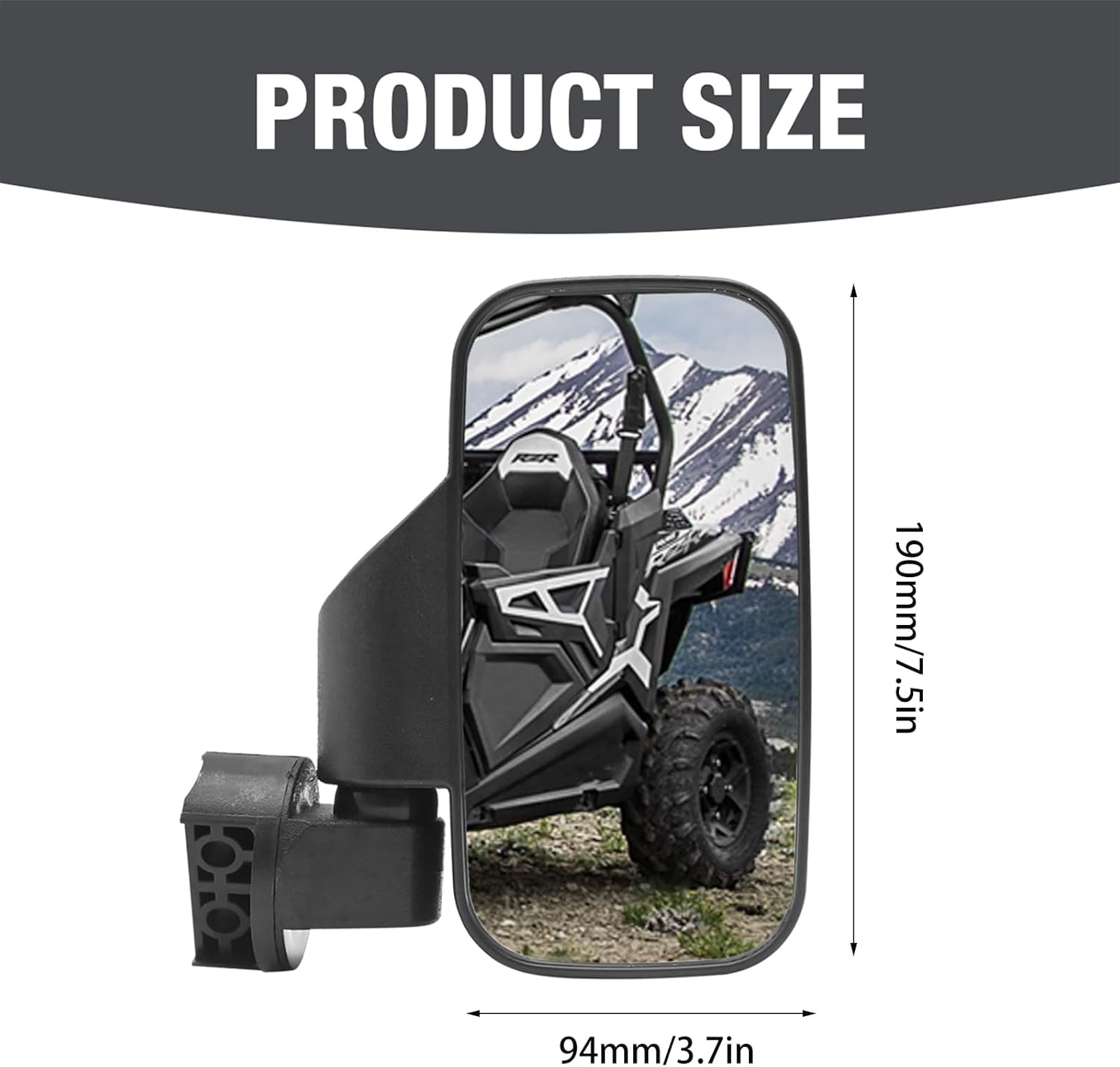 Side mirrors measure 3.7" wide X 7.5" high; lenses are convex