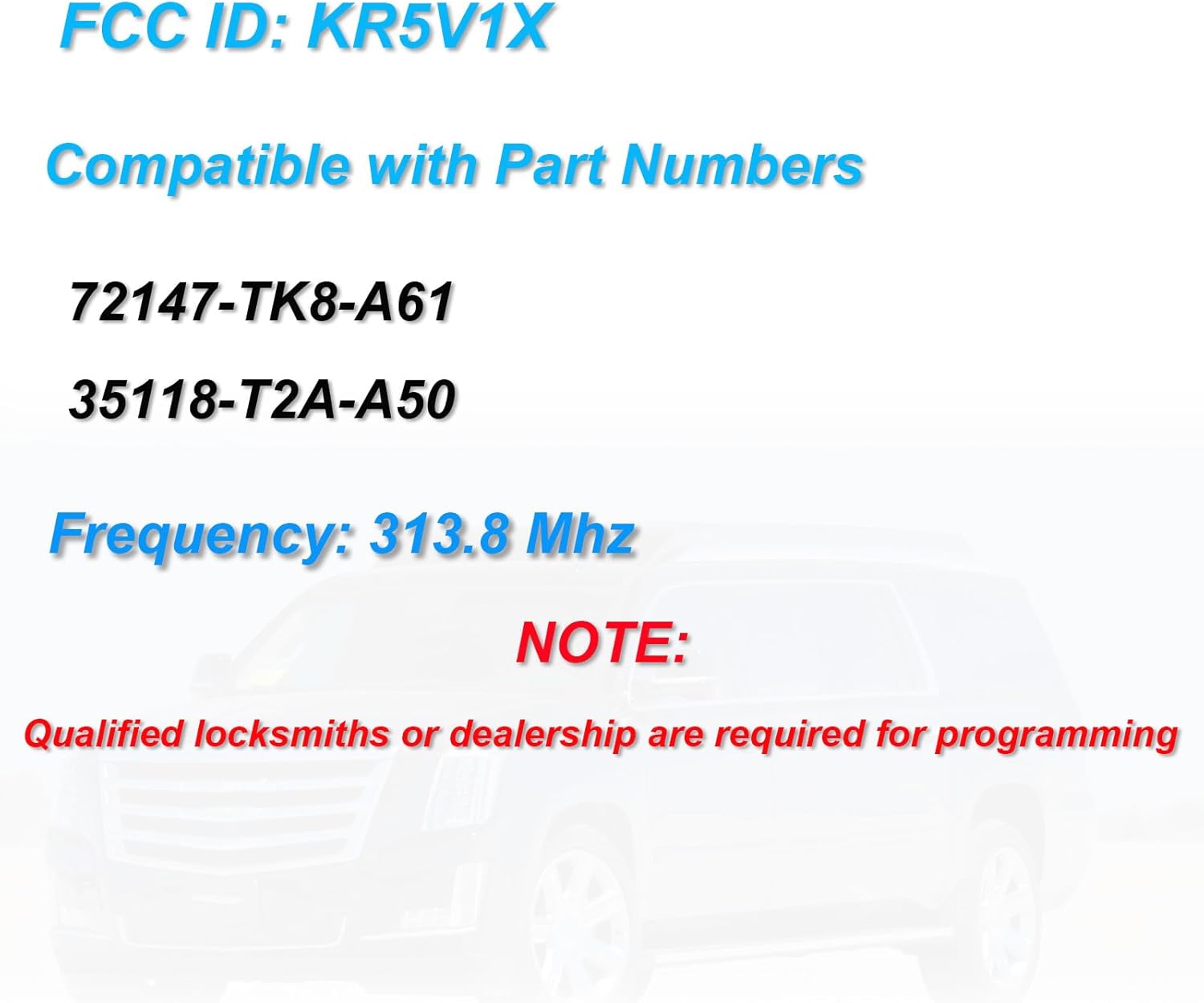 key fob Remote Replacement fits for Honda Odyssey 2014 2015 2016 2017 Smart Car Keyless Entry KR5V1X 313.8 Mhz 72147-TK8-A61 35118-T2A-A50