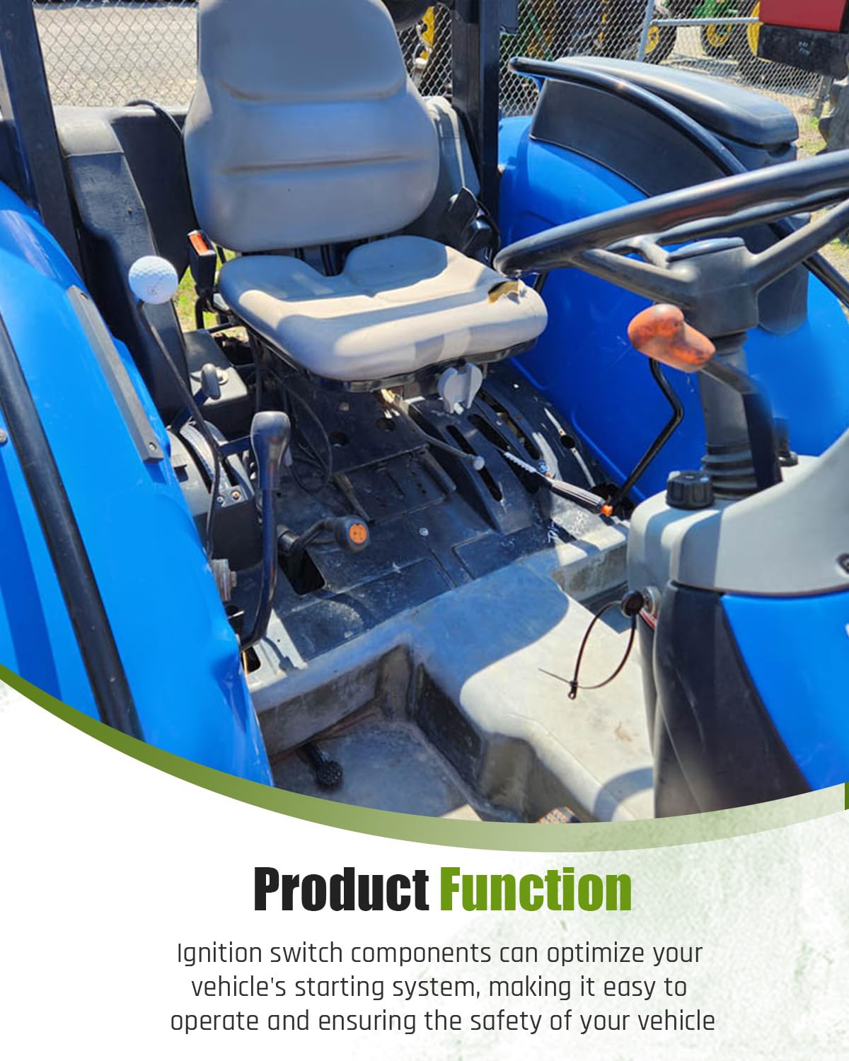 Fitment: Fit for New Holland Commercial Products: CM222, CM224, CM272, CM274 Fit for New Holland Tractor: 1215, 1220, 1320, 1520, 1620, 1920, 2120, TC30 Replacement Part Number: SBA385201890, 87760272 Specification: Color: Black Material: Metal Installation Method: Replacement installation Package Includes: 1*Ignition switch