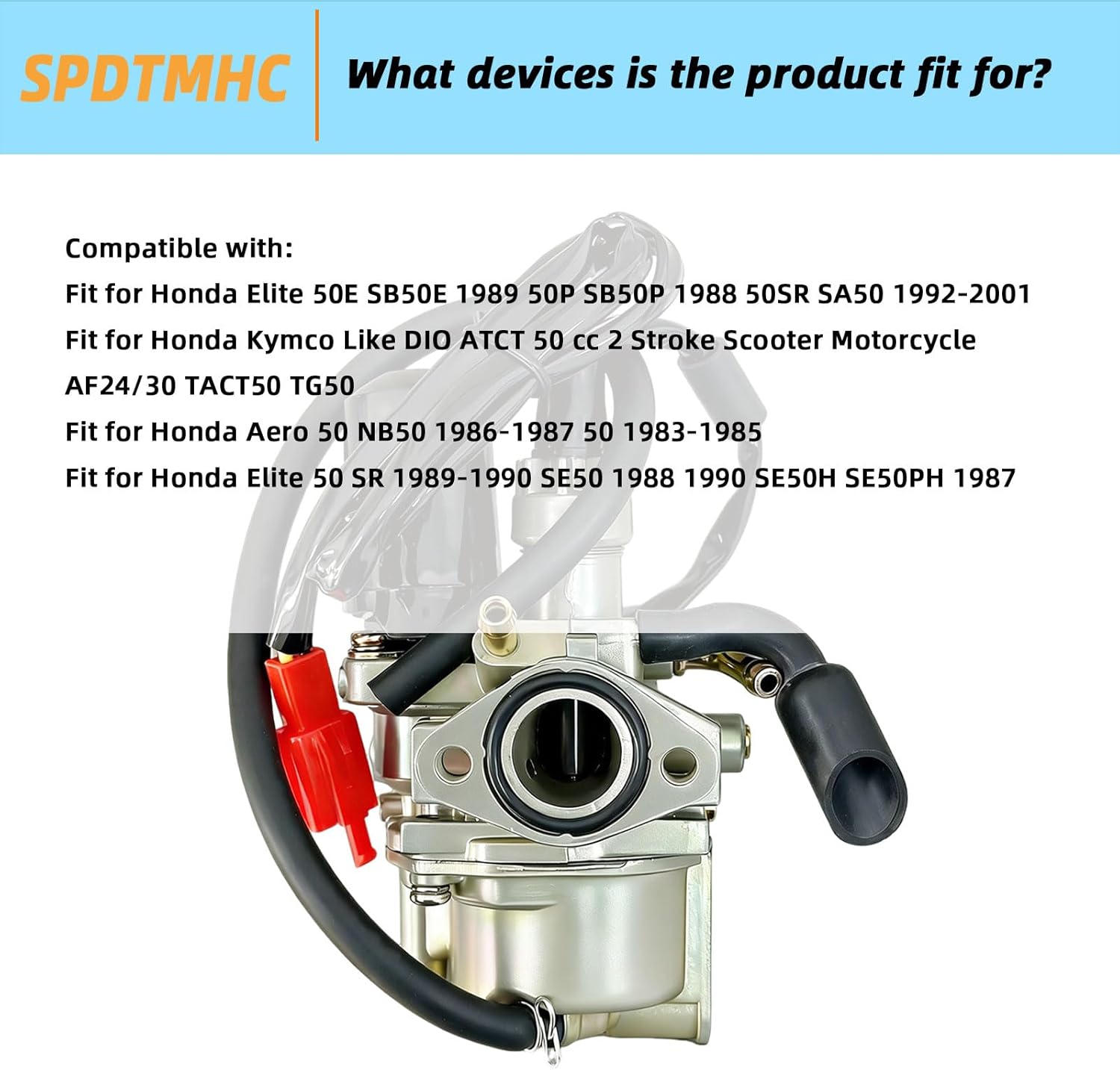 Compatible with:Fit for Honda Elite 50E SB50E 1989 50P SB50P 1988 50SR SA50 1992-2001 Fit for Honda Kymco Like DIO ATCT 50 cc 2 Stroke Scooter Motorcycle AF24/30 TACT50 TG50Fit for Honda Aero 50 NB50 1986-1987 50 1983-1985 Fit for Honda Elite 50 SR 1989-1990 SE50 1988 1990 SE50H SE50PH 1987Size: Mounting Distance: 35mm, Air Filter Intake Diameter: 28mm, Intake Diameter:17mmPackage Includes: 1 x carburetor,2 x 1 Fuel pipe,4 x Fuel Line Clamps