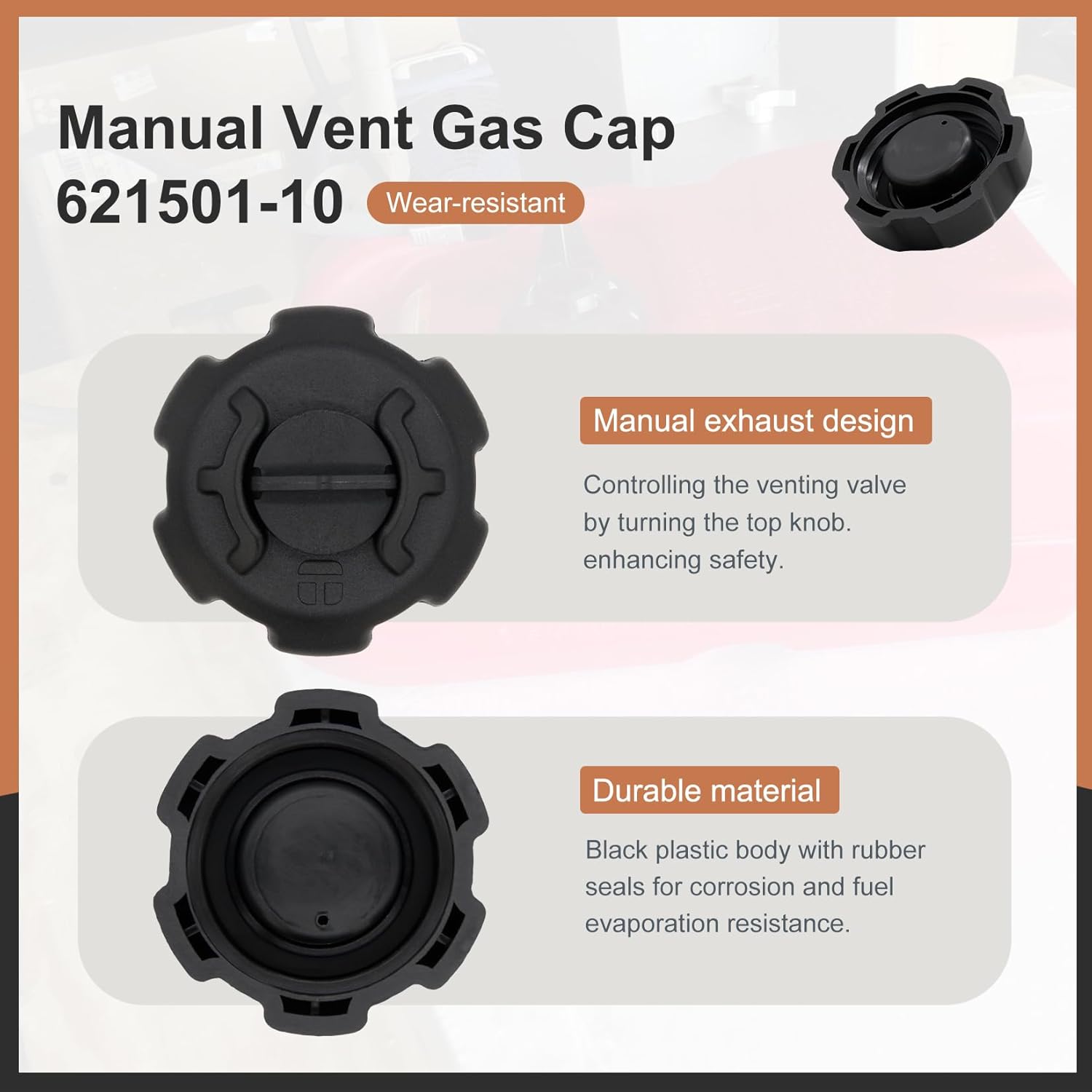Package Includes: 2 X 621501-10 boat gas tank cap Fit: The 621501-10 boat gas tank cap fit for a variety of fuel tank models, including 031103, 031106, 031109, 031112, 031212, 620003, 620049, 630012, 630013, 630014, 620040, 720040, 730014, and 730025 621501-10 boat gas tank cap Compatible with A-ttwood 12 gallon, 6 gallon and 3 gallon tanks, B-ass Tracker boat tank, S-cepter 12 gal and 6 gallon tank, 3 gallon Q-uicksilver plastic gas tank, old 6 gallon plastic Dura-Tank Essence, M-ercury plastic tank, Y-amaha and more Easy to Replace: You can assemble and remove quickly just by hands. It is designed to be easy to install and can be quickly replaced or installed on existing fuel tanks without complicated tools or techniques, greatly saving installation time High Quality: Made of durable plastic, with good durability of the fuel tank cap, has good chemical resistance. It can resist the erosion of acids, alkalis and solvents, and can maintain performance even in harsh environments