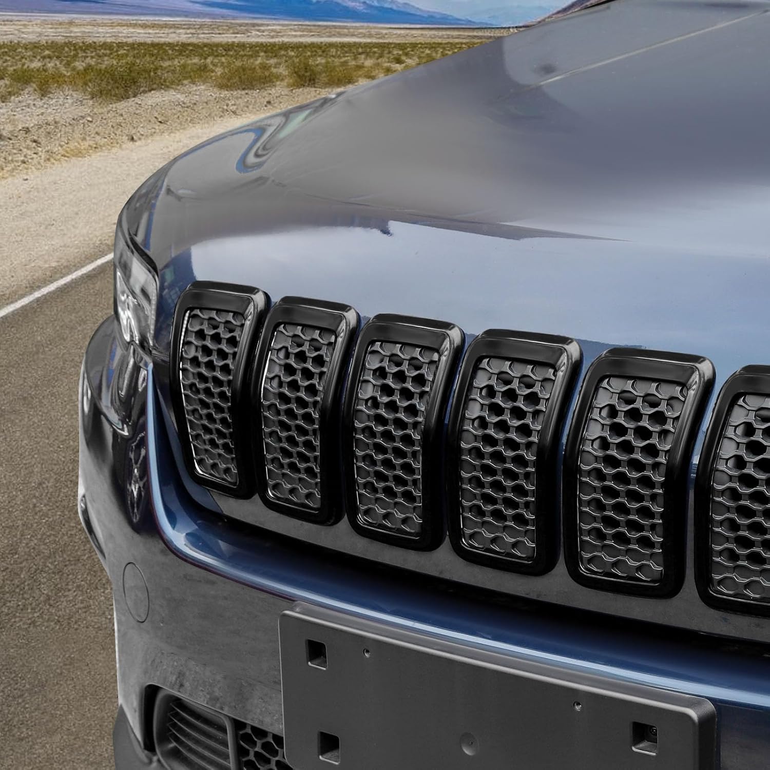 Jimen Fit for Jeep Cherokee 2019-2023, 7PCS Front Grill Inserts Grille Cover Trim Exterior Accessories