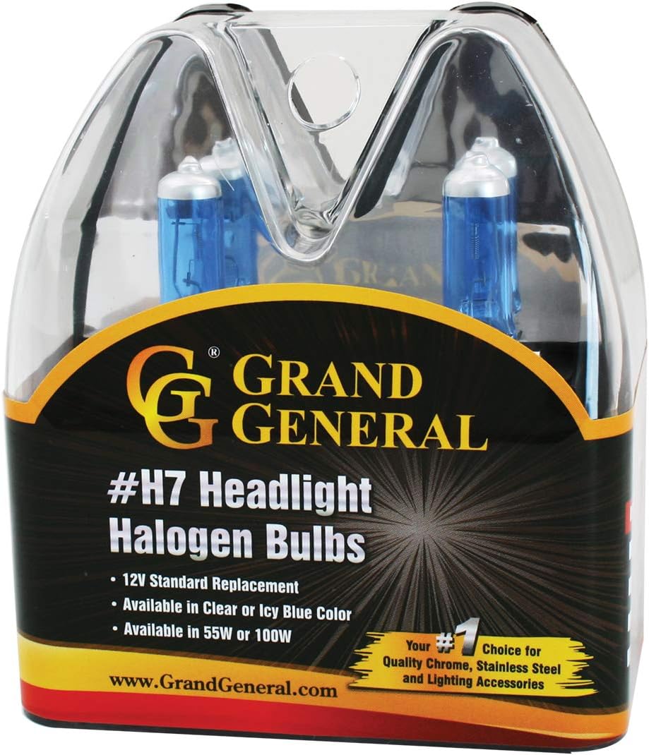 Grand General is a leading manufacturer and distributor of high quality truck accessories since 1984 featuring an extensive selection of chrome and stainless steel products. Grand General H7 icy Blue Headlight halogen bulbs, Twin pack, 12V/100W for trucks, towing, trailers, ATVs, RVs and more. Upgrade your vehicle's interior, exterior, etc. With Grand General H7 icy Blue Headlight halogen bulbs, Twin pack, 12V/100W. Customize your rig and take pride of your ride with Grand General quality accessories