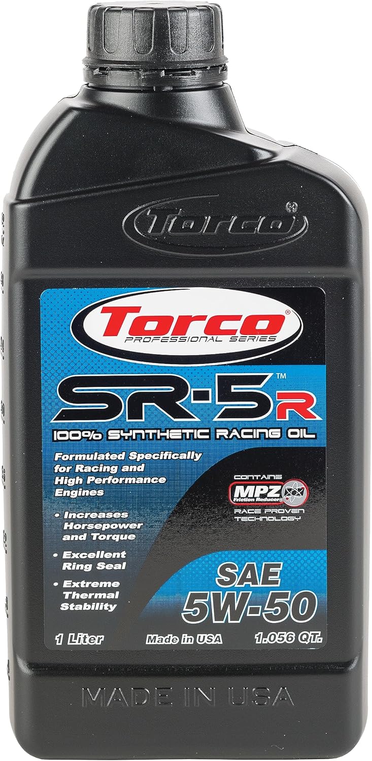 Product Description Torco SR-5 20w50 Synthetic Racing Oil Bottle - 1 liter has been developed under the most severe racing conditions. The Torco SR-5 offers the highest level of performance and protection for highly modified race engines. The SR-5 utilizes group IV/V synthetic base oil chemistries and additive technologies that have been engineered to withstand extreme loads, constant severe temperatures and maximum engine revolutions. The SR-5 utilizes Torco's race specific MPZ technology which reduces frictional losses for maximizing horsepower and torque. It exceeds API performance requirements. It is intended for racing applications. It is recommended for use in racing or highly modified street engines where an SAE 15W50 or 20W50 is specified. It is commonly used in road racing, drag racing, off road, endurance and circle track. It is turbo, supercharged, nitrous and alcohol (carbureted/injected) approved. It is highly recommended for continuous extreme temperature operation and heavily loaded engines. It is an excellent choice for early or late model large displacement (big bore) engines used for high performance street or competition use. It provides optimized ring seal and improved horsepower over other synthetic oils in the same viscosity grade. Amazon.com Motor oil is made from crude oil and is used to lubricate, clean, and cool engines. Types of motor oil include conventional, synthetic, diesel, bio-based, hybrid (blends of conventional and synthetic), and recycled oils. Motor oil varies in weight and viscosity, as well as additives that some manufacturers add to the oil during the refining process. A numerical code system created by the Society of Automotive Engineers (SAE) grades motor oils according to viscosity--the higher the number between 0 and 60, the more viscous (thicker) the oil is. Most consumer motor oils are graded by two numbers, with the first number indicating cold weather (Winter or "W") performance.SAE 20W-50This oil has a weight of SAE 20W-50, meaning it has an SAE viscosity rating of 20 in cold temperatures and a rating of 50 at normal operating temperature. Always check your vehicle's owner's manual to verify that this is the correct weight of motor oil for your vehicle.Full Synthetic OilThis oil is a full synthetic oil, meaning crude oil is not used in making it. Synthetic oil can be used in vehicle engines instead of motor oils refined from crude oil, and often provides superior mechanical performance over traditional motor oil, including increased gas mileage and reduced engine wear at extreme temperatures. Its complex method of production means it can often cost more than conventional motor oil. Racing OilRacing oils are designed for track cars and other types of high-compression vehicles intended for motorsports competition. They contain particular additives for increased engine horsepower and reduced friction on metal parts, and provide special protection for engines with high compression or higher horsepower. Racing oils usually include fewer detergents than regular conventional motor oils. Please note that many, if not all, oils labelled as racing oils are not street legal, and it is not recommended to put racing oil in a conventional passenger vehicle. Make sure to double-check the product label as well as the specifications of your vehicle to ensure proper usage.