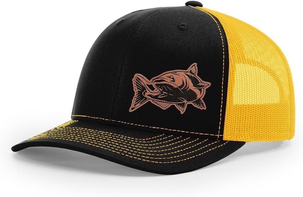 Laser Engraved Leather Patch; 60% polyester, 39% cotton, 1% spandex; mesh back; 6-panel, structured, mid-profile; 3.5 inch crown; eight-row stitching on bill; hard buckram backed front panels; snapback closure; Silver underbill