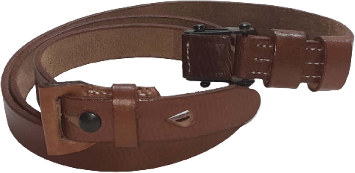 A quality reproduction of Mauser K98 white leather sling. Correctly cross-hatched leather complete with buckle and keeper.