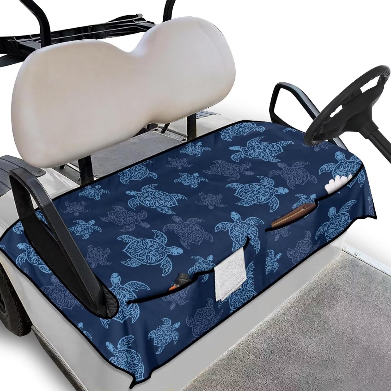 This golf cart seat cover is made of polyester material and is a suitable accessory for various golf carts such as EZGO or Club Car. Made of polyester material, it has the characteristics of breathability , wear resistance, and abrasion resistance, protecting the seat while providing a warm seat in cold weather or rain Whether hot or cold, it is very suitable for temperature control. Provides year-round protection, it is soft and comfortable, will not fade in sunlight, easy to install, protects your legs from the damage of high-temperature seats, and comes in a variety of bright colors and fashionable designs to choose from More and more Americans use golf carts to walk around the community. This seat cover can not only protect your seat from dirt and wear, but also durable, portable,lightweight,foldable,and machine washable.Meanwhile, this is also a suitable gift for golfers