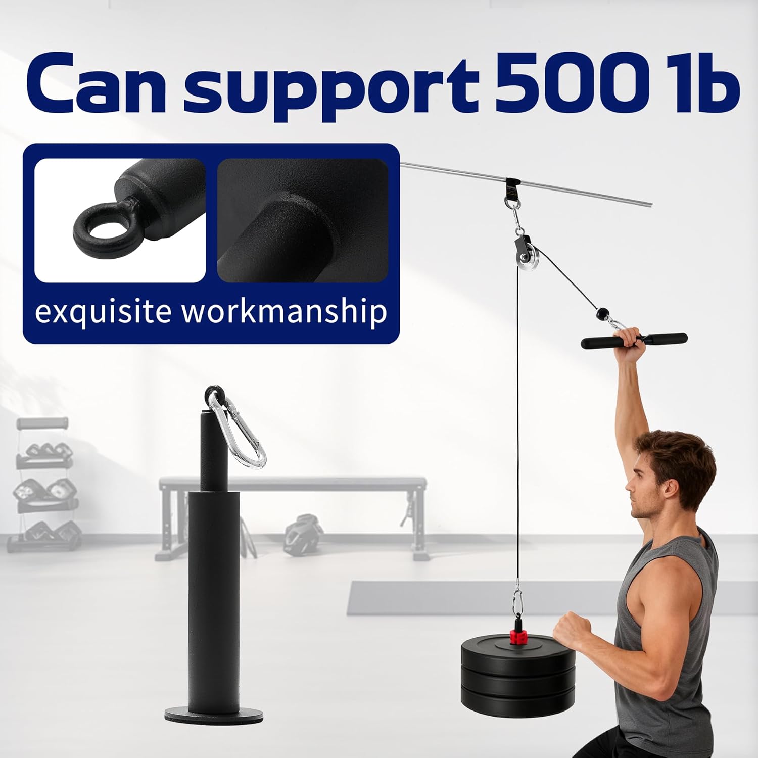 Transform any space into a professional-grade strength studio Pulley System. Engineered for the serious athlete, it combines a heavy-duty loading pin and premium aluminum pulleys with silent bearings for incredibly smooth, quiet operation. The 360° rotating stainless steel hanger and anti-loosening locknuts ensure safety and stability under extreme loads. Complete with a low-row handle, ankle strap, and all necessary hardware, this versatile kit mounts easily to power racks, walls, or ceiling joists. Target every muscle group or use it as a heavy-duty utility hoist—it's the ultimate, space-saving solution for comprehensive home gym training.