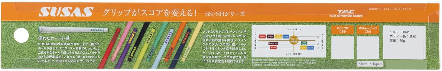 SUSAS Golf Grip Evolution Your Swing Stain resistant and easy to fall off even when attached to keep its vibrant color. Abrasion resistant unlike traditional elastomers. Rubber Altitude: 50 degree body, 70 degree grip end Narrower than SS series